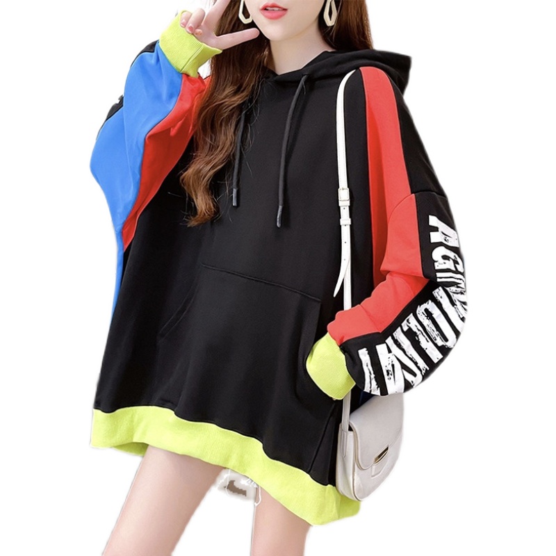 Pregnancy Woman Dress Autumn Clothing Korean version Loose Cotton hat Alphabet Printed Blouse with long version of large size female clothing Damp Hood