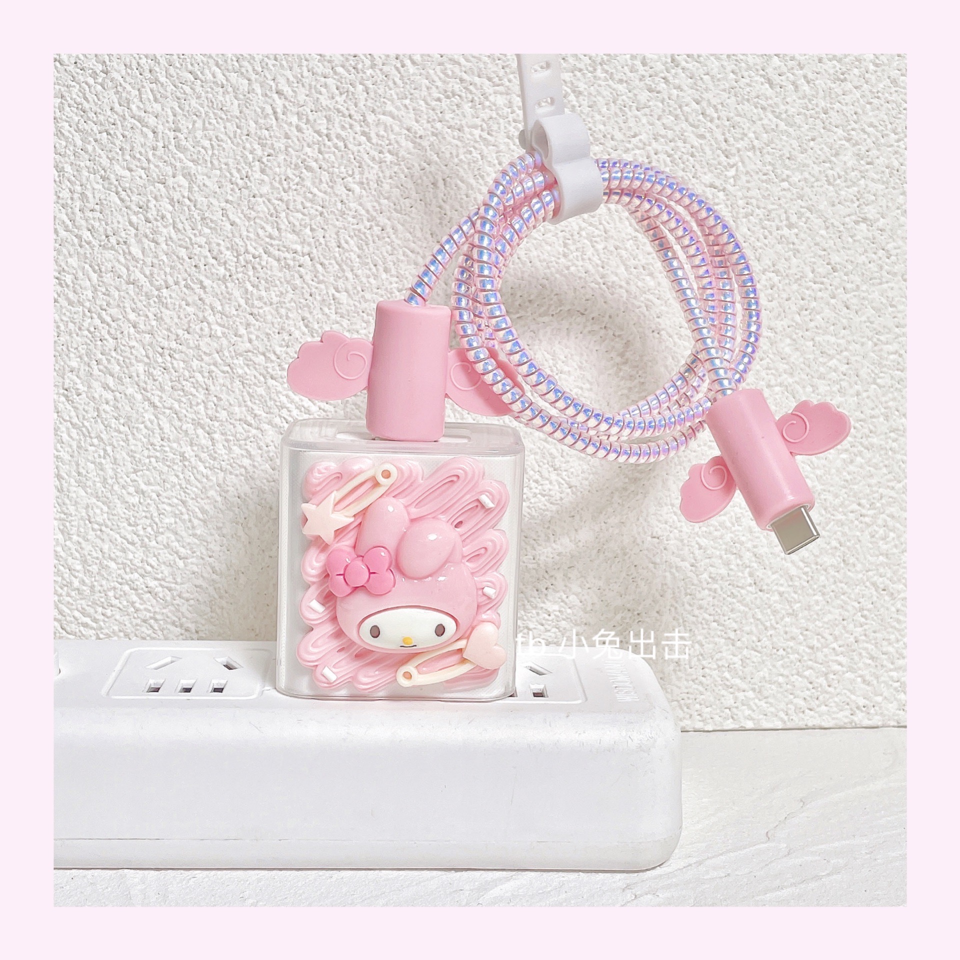 Cream Big Ear Dog charger transparent cover Cream Big Ear Dog transparent cover Data line protection Cream Big Ear Dog transparent cover Data line protection Cream Melody charger transparent cover Cream Melody transparent cover