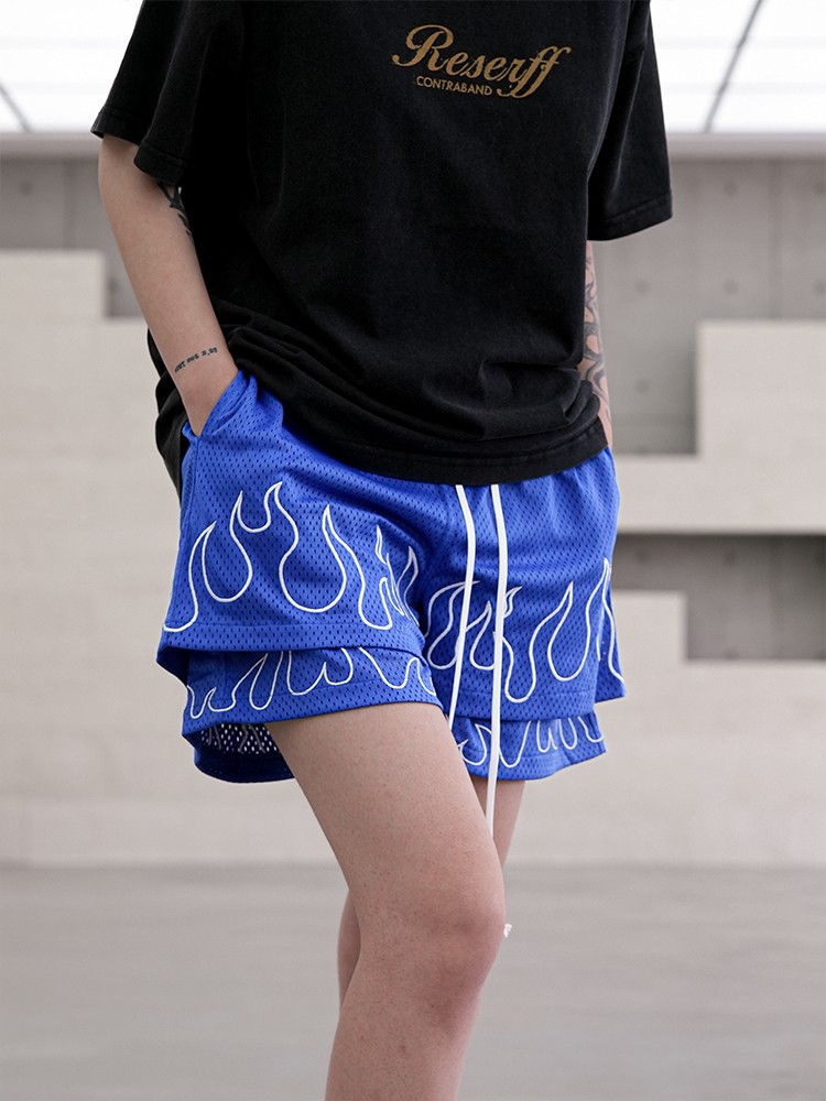 RESERFF Original American Retro Quarter-Shaped Double Layer Mesh Print Summer Shorts