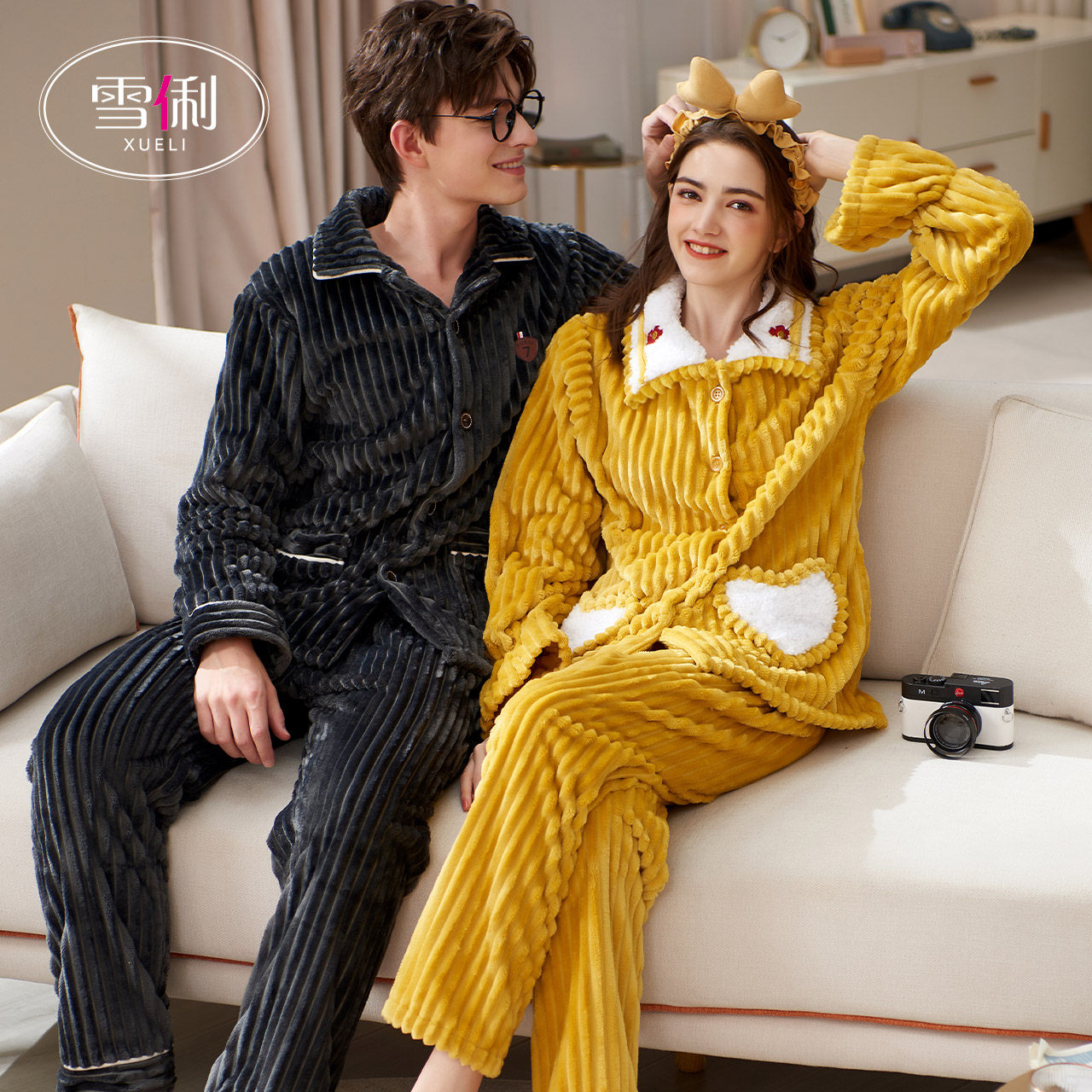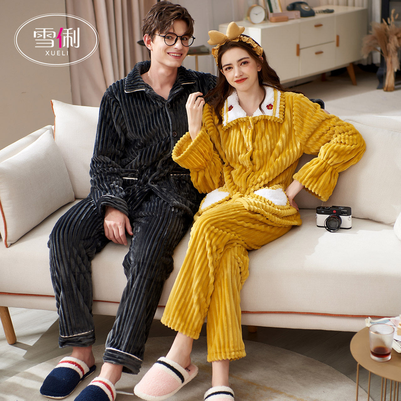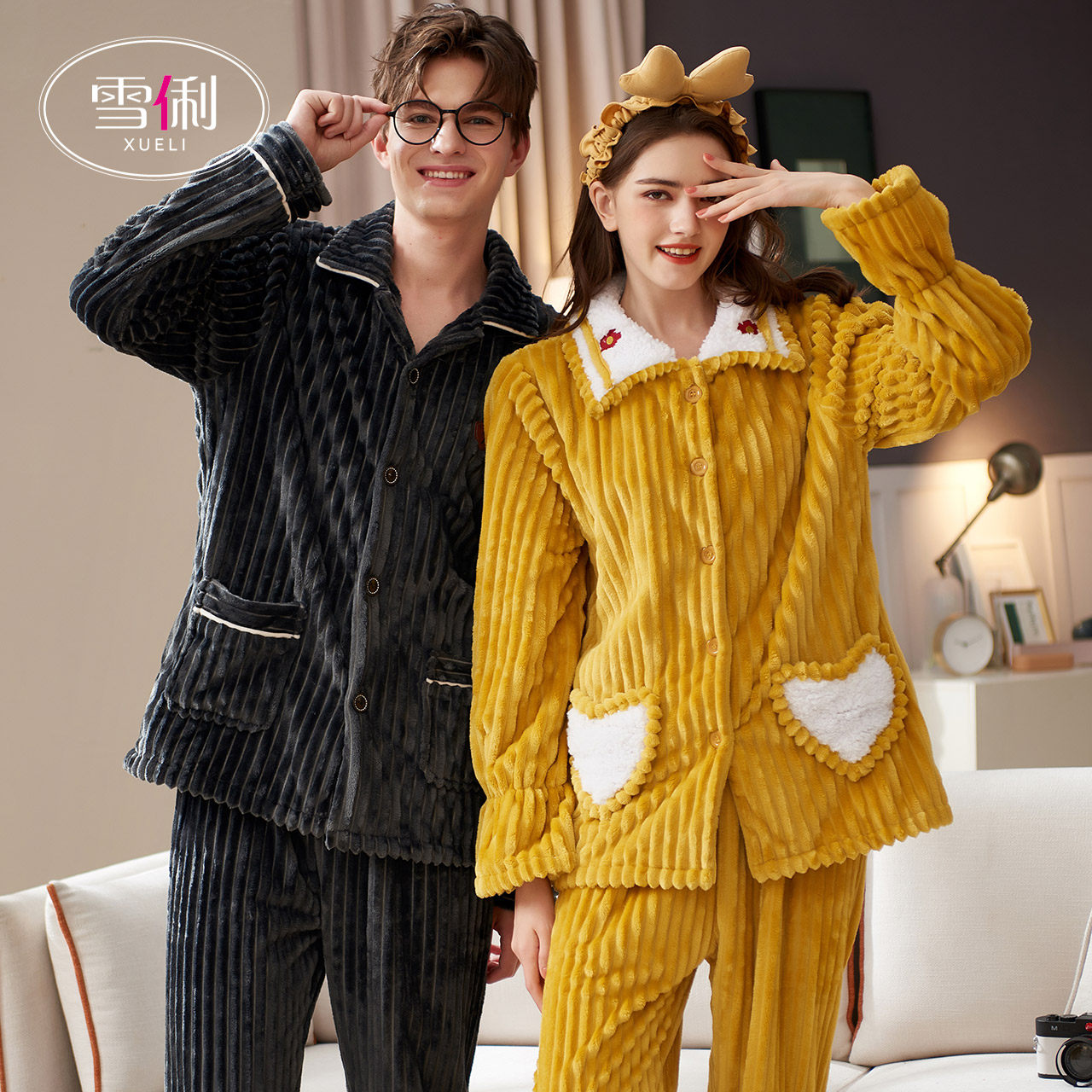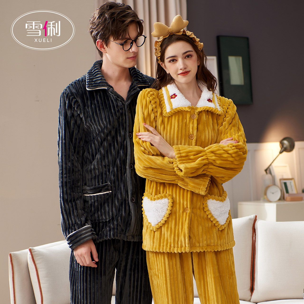 Snow Li couple pajamas winter thick coral velvet women can wear couples men's loungewear autumn and winter suits