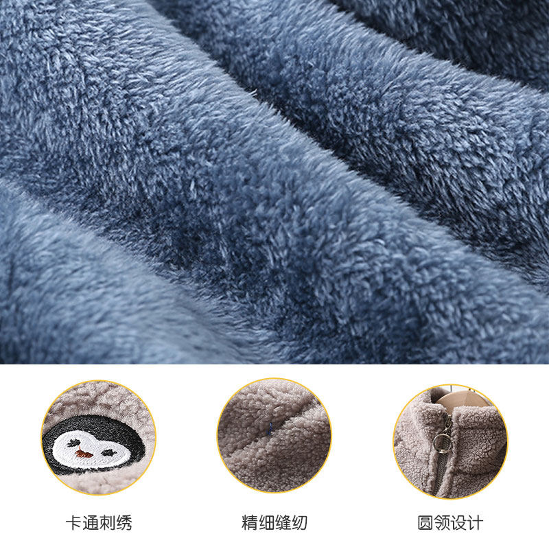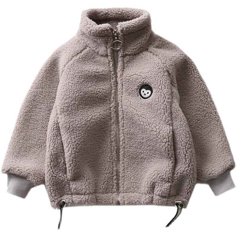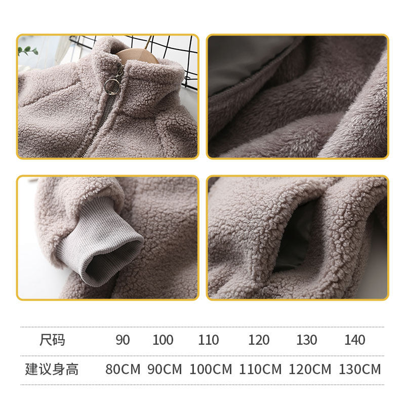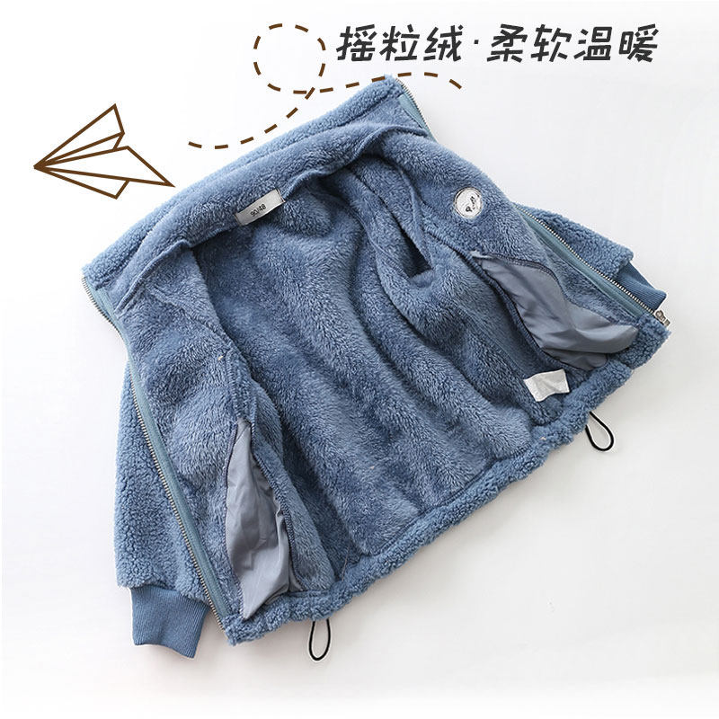 The boys' lamb fleece coat for school is thickened and linted with a collar pulled out cardigan to keep warm in autumn and winter