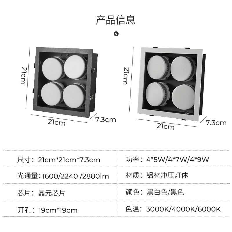 LED sweet flower downlight grille ceiling guest dining room without main lighting four-head 4000K embedded bold bucket light