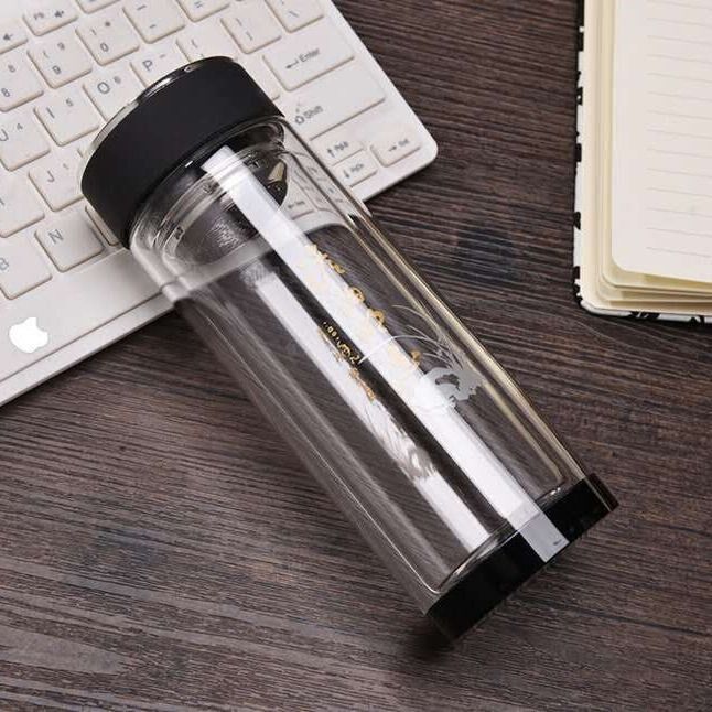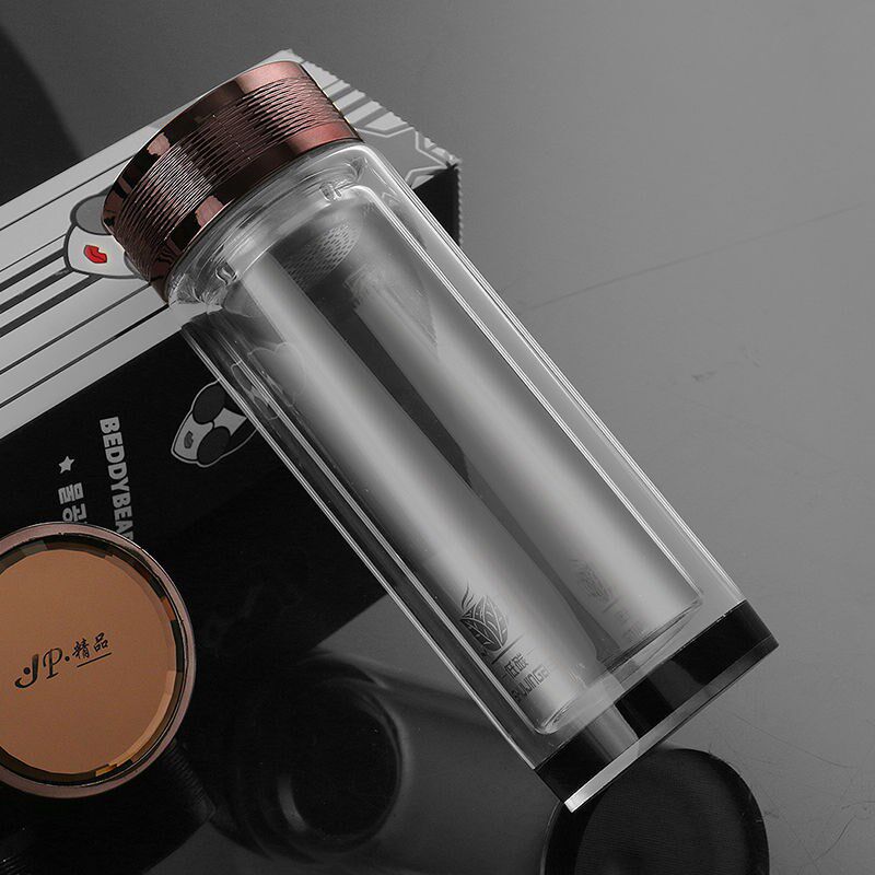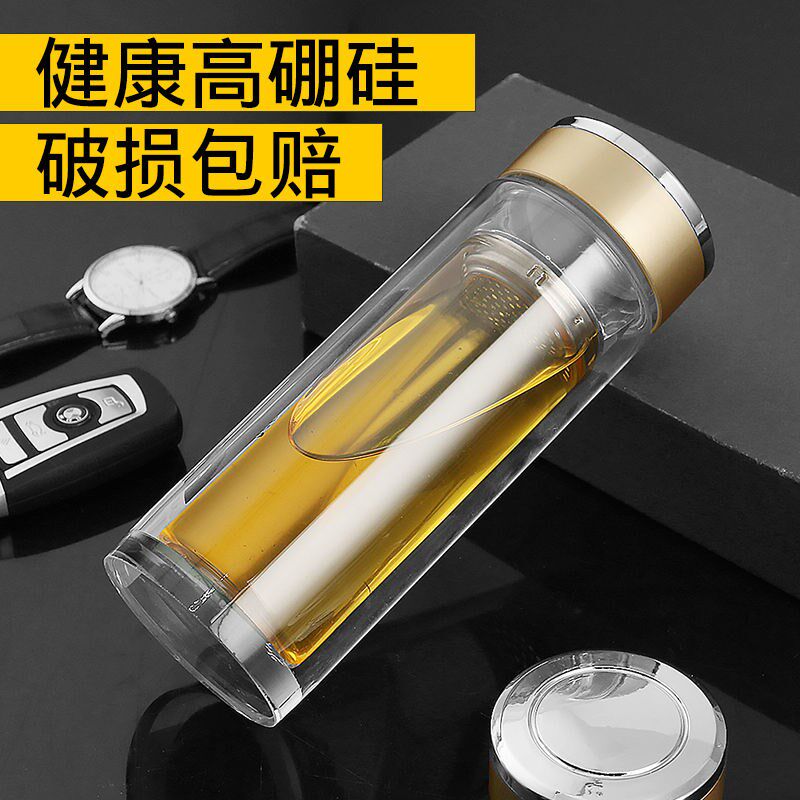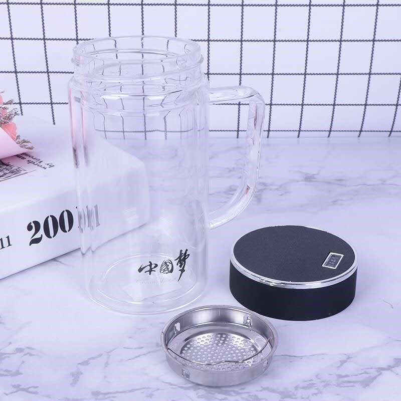 Large-capacity double-layer thickened heat-insulated explosion-proof glass cups for men and women to make tea home business hand-printed lettering gifts