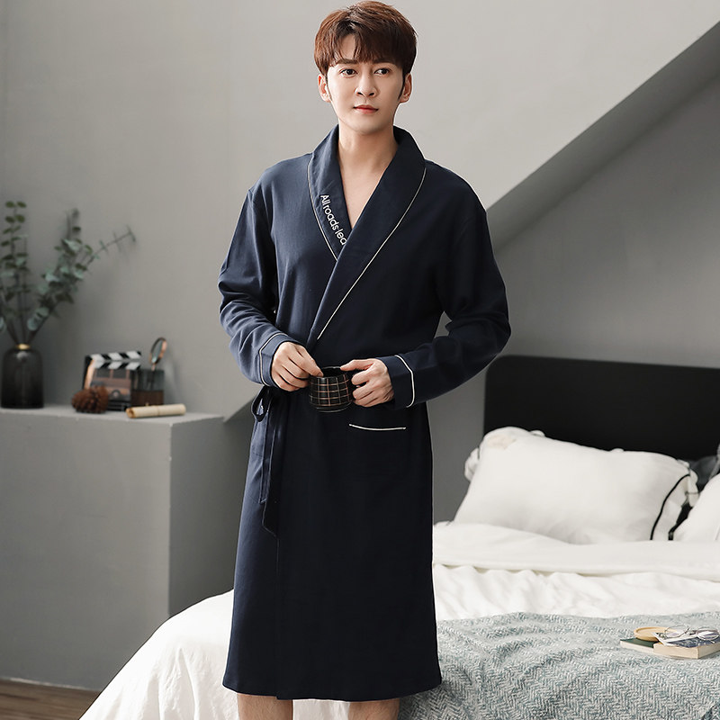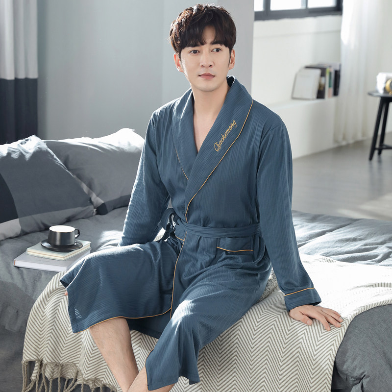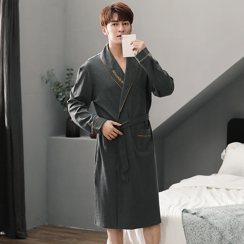 Spring and autumn season Gfattega large code sleeping robe men's pure cotton long sleeves 240 catty chubby fattening all cotton bathrobe pajamas