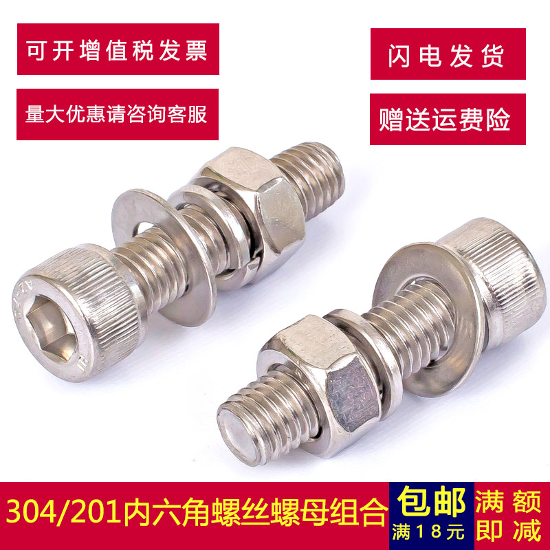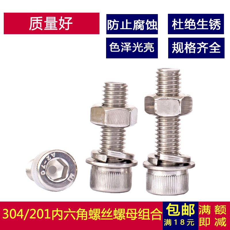 M3M4M5M6 304 stainless steel hexagonal screw nut pack bolt screw flat mat mat large