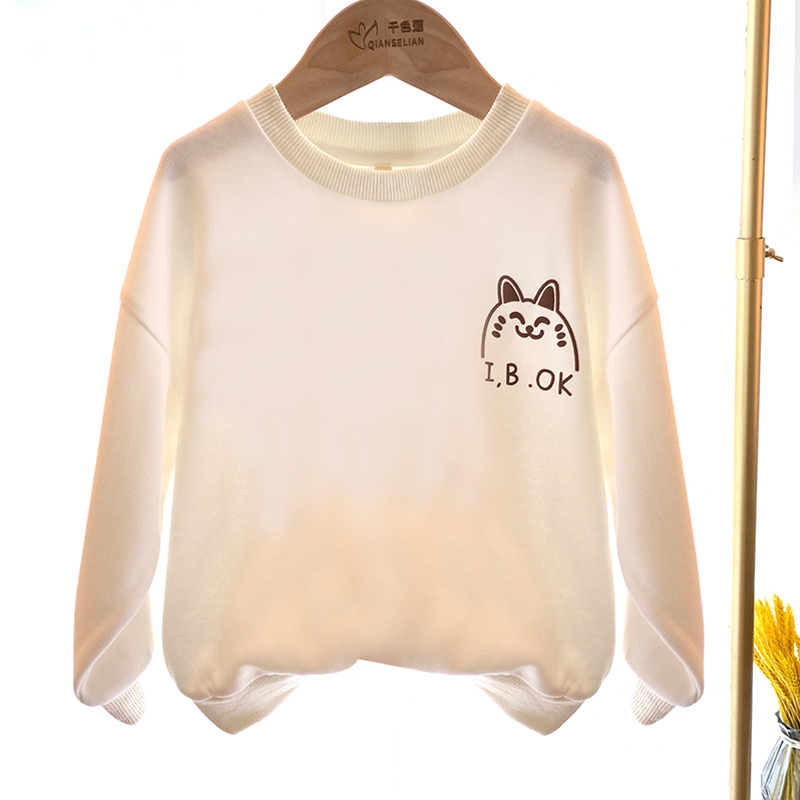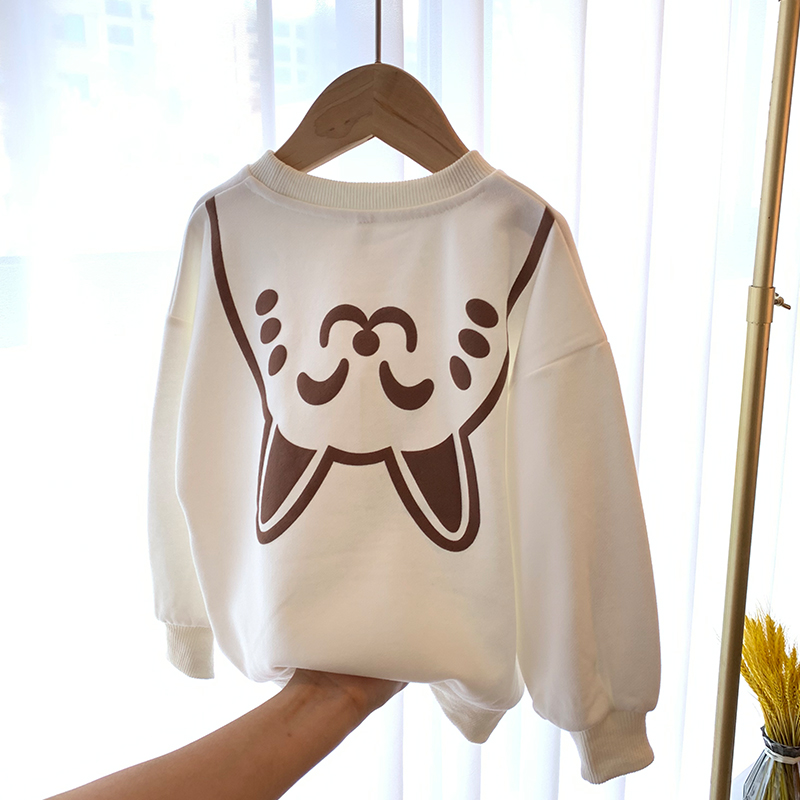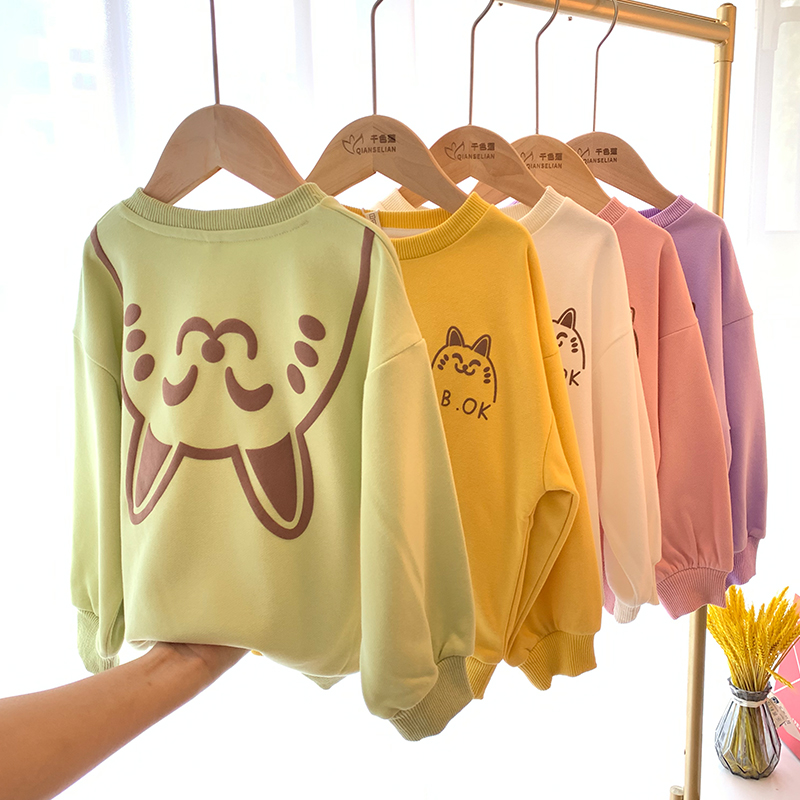 Boy girl's thick T-shirt round the new trend fashion printed children's blouses pure cotton casual spring and autumn children's clothes