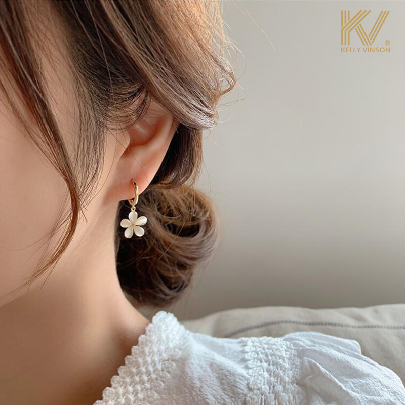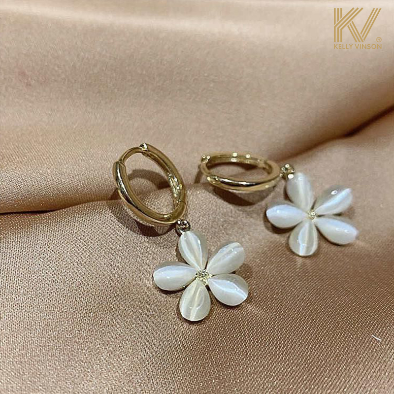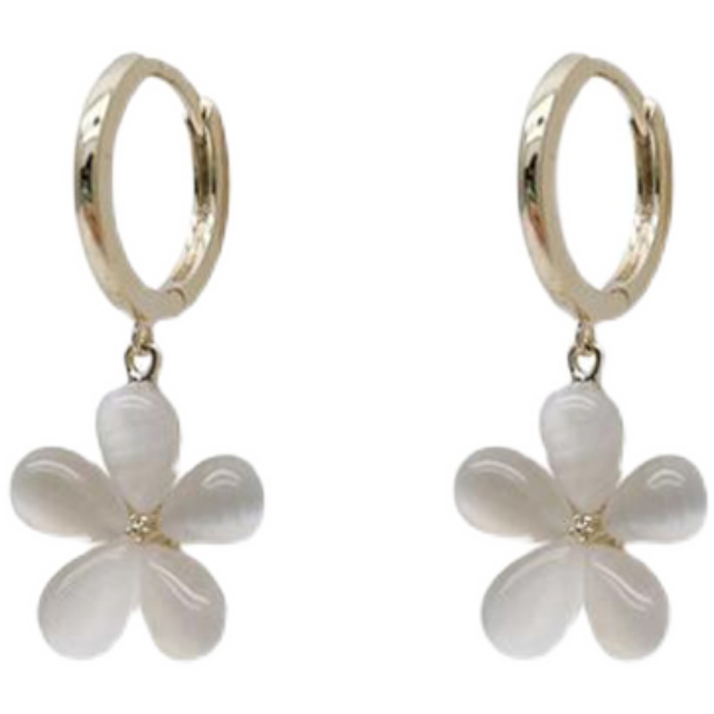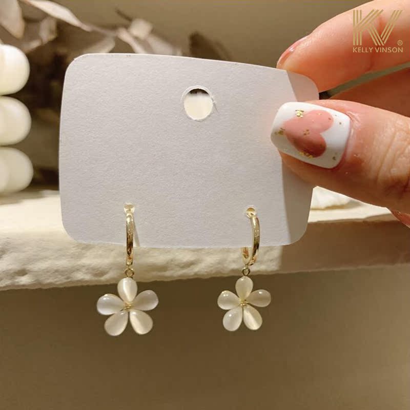 Small fresh ear jewelry female temperament earrings new niche opal French white flower earrings fairy ear acupuncture