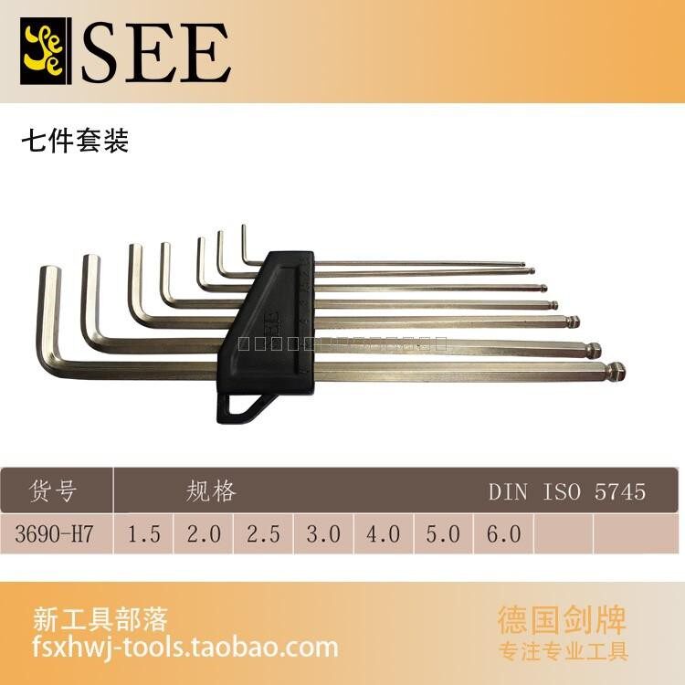 German imported inner hexagon wrench sword card SEE1 5-10mm male system lengthened ball head 7 branches 9 sets 3690