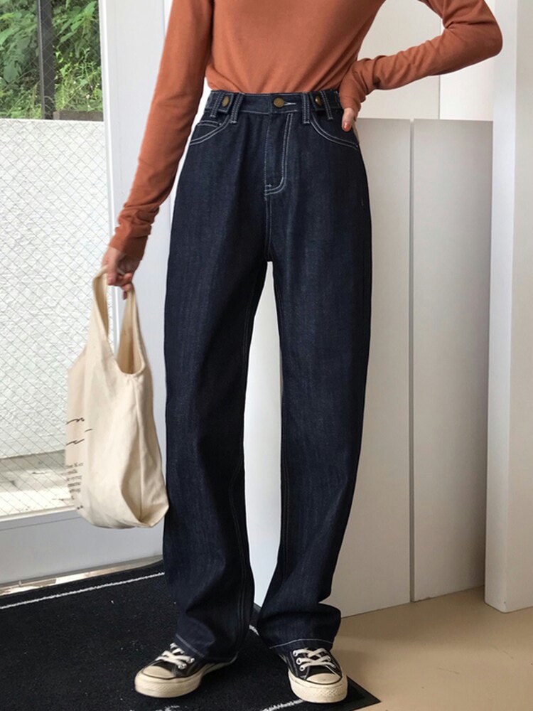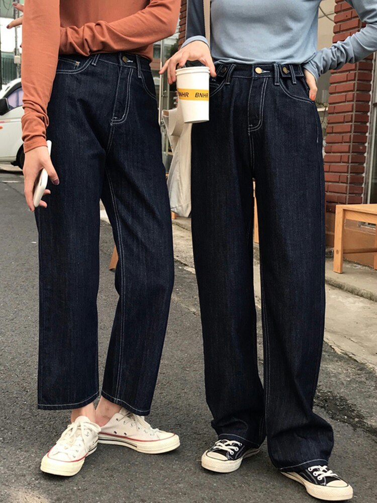 Fit for hip thigh coarse pants big code thin section 90% Soft fabric Fat sister loose Thin Straight Drum Jeans