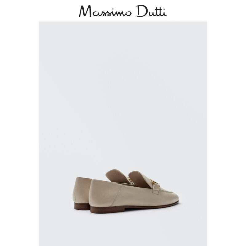 Massimo Dutti Women's Shoes Beige Base Metal Buckle Design Genuine Leather Casual Flat Bottom Lefu Shoes 11578850719