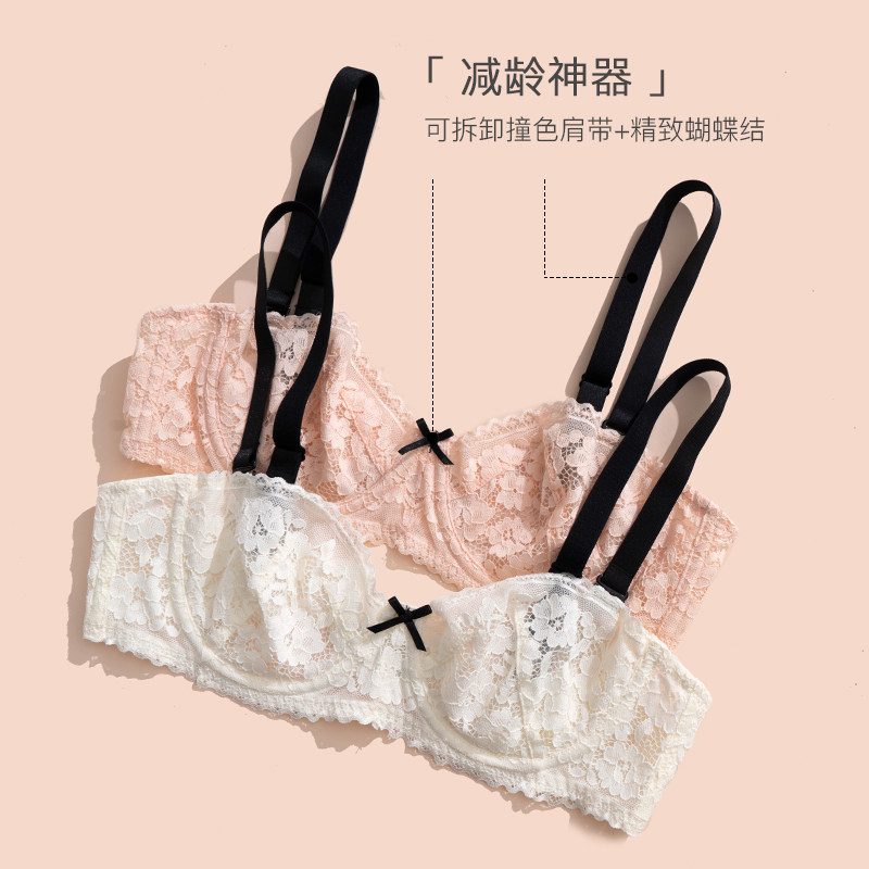 Venus blessing sexy ultra-thin lace lingerie women's big breasts show small closing pair of breasts anti-sagging half cup bra summer