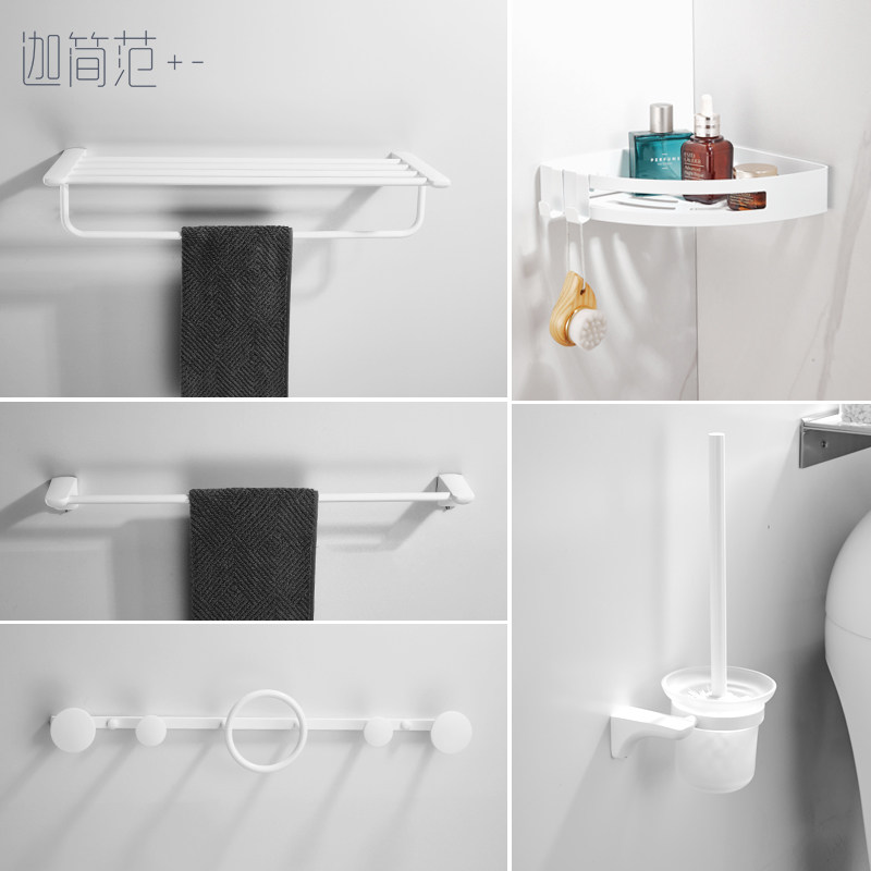 Bathroom Hair Towel Rack Free From Punching Makeup Room Shelving wall-mounted matt white bath towels Toilet Hardware Pendant