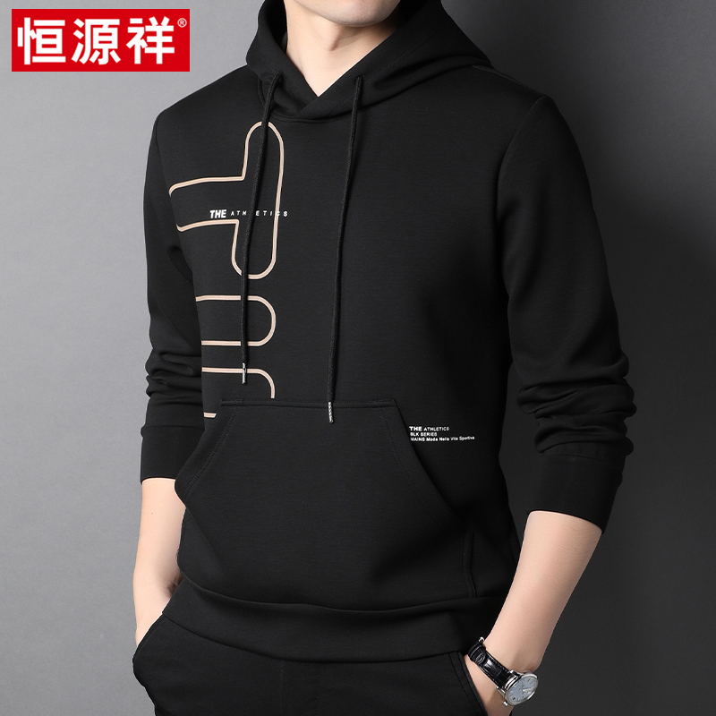 Hengyuanxiang round neck hooded sweater men's 2021 spring and autumn new print long-sleeved loose trendy casual bottoming shirt