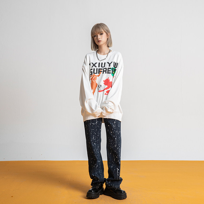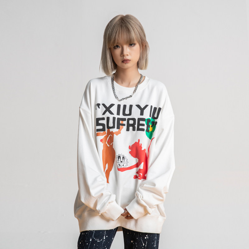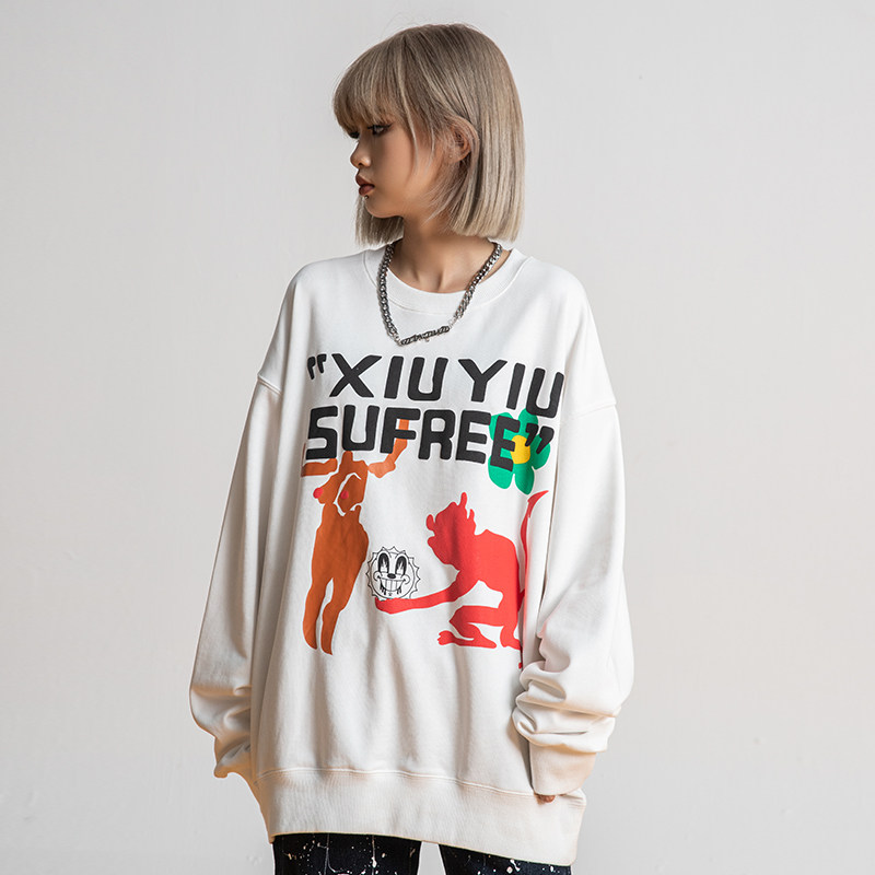 New factor XINYINSU2021AW evil with evil sun printing LOGO sleeve head casual blouse with loose shoulder jacket