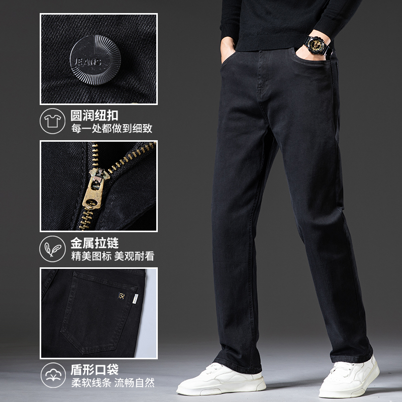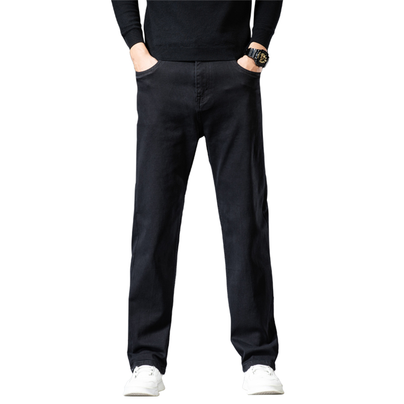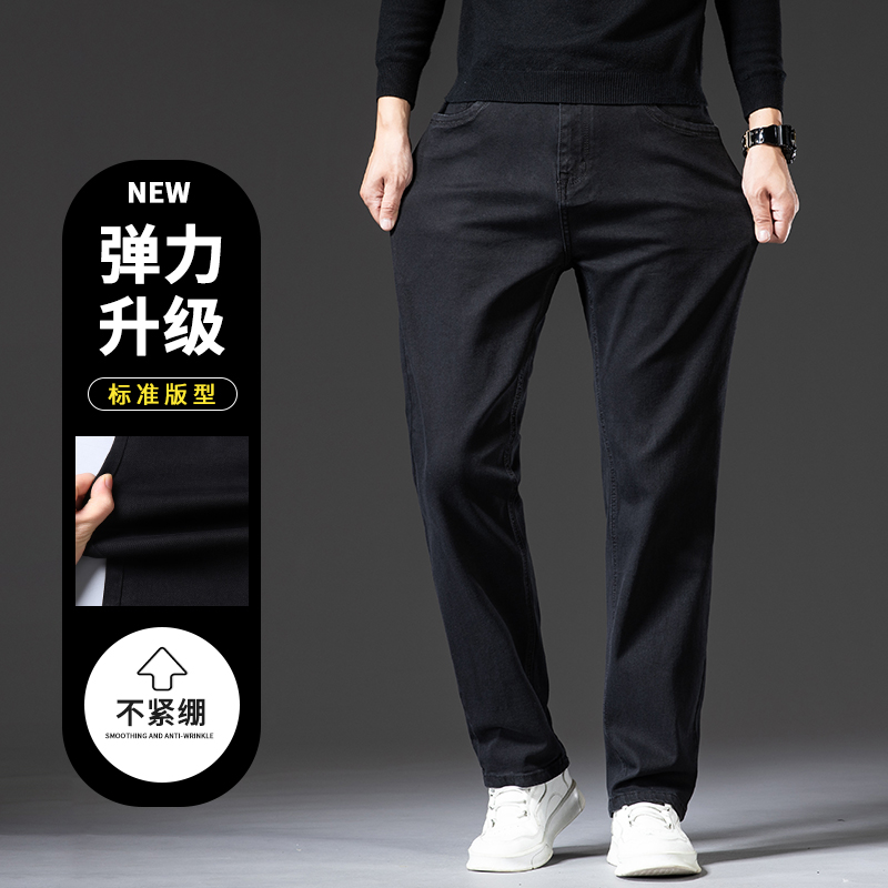 Autumn black jeans men's straight tube loose large size plus fertilizer to increase spring and autumn men's elastic casual trousers