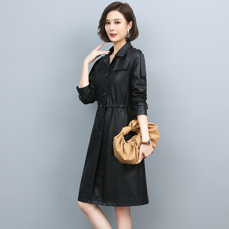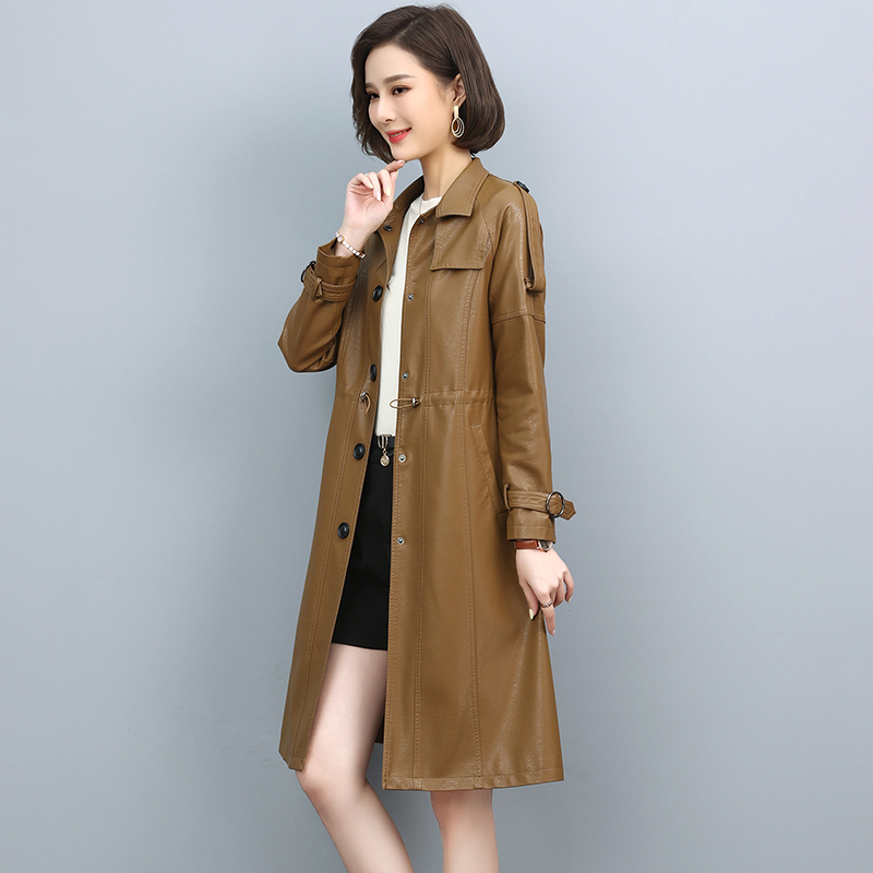 Haining leather leather clothing women's long version 2021 Spring and Autumn New Korean version slim sheep leather windbreaker coat coat