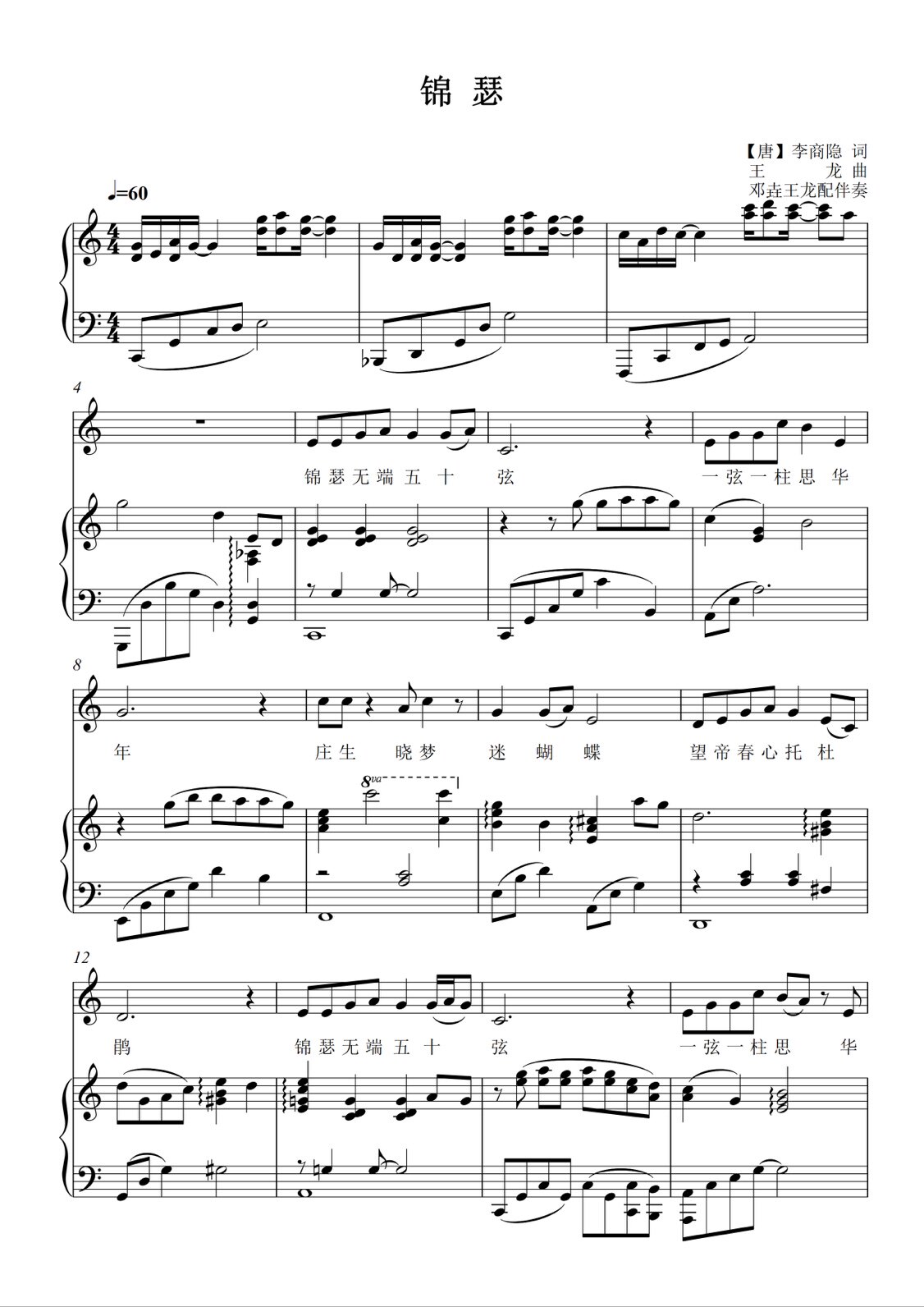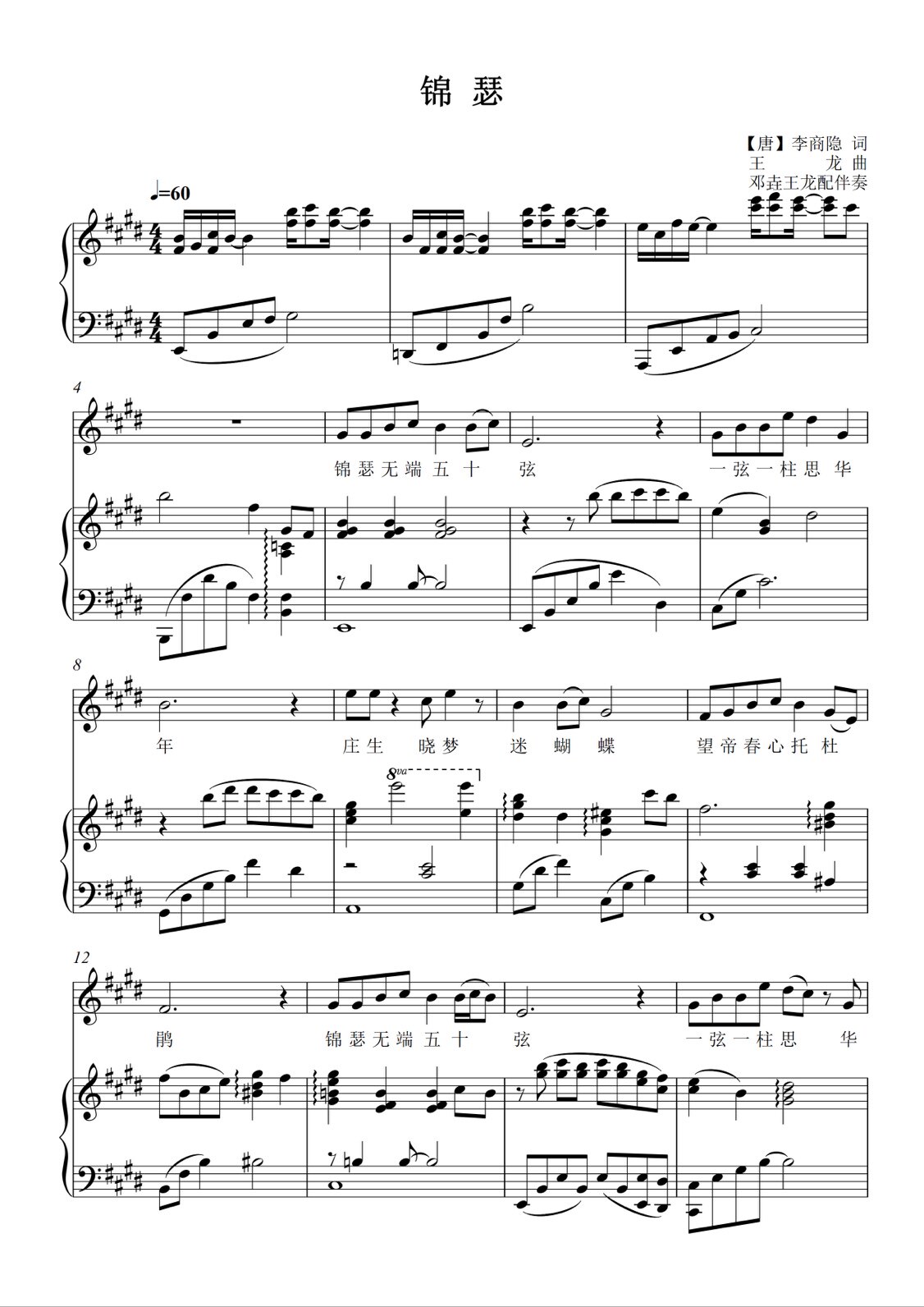 Kinther E down E D C B tune King Dragon tunic vocal piano accompaniment Spectral score of five-line spectrum HD