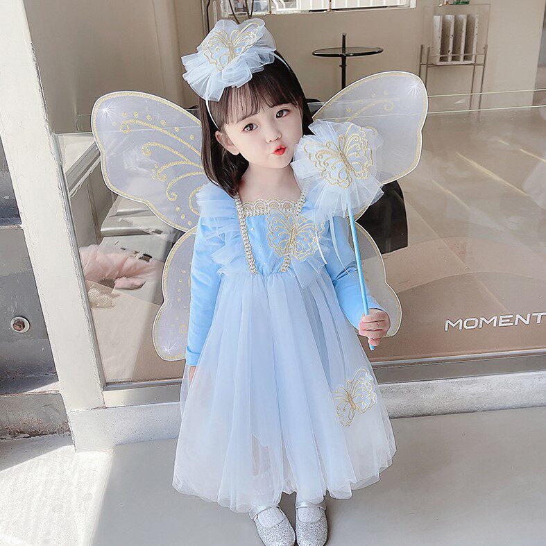 Girl Skirt 2022 Springtime Child Superfairy Genie Princess Acting Out The Baby Butterfly Wings Long Sleeve Foreign Dress