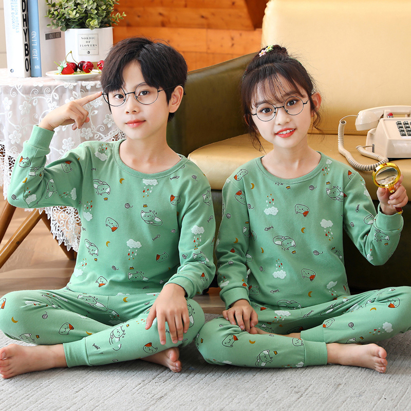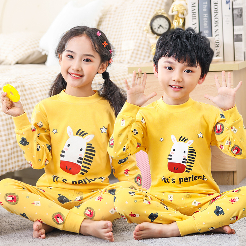 Children's underwear sets in pure cotton collar autumnics sanitary pants male and female children's autumn and winter style cotton sweater home clothes children's pyjamas