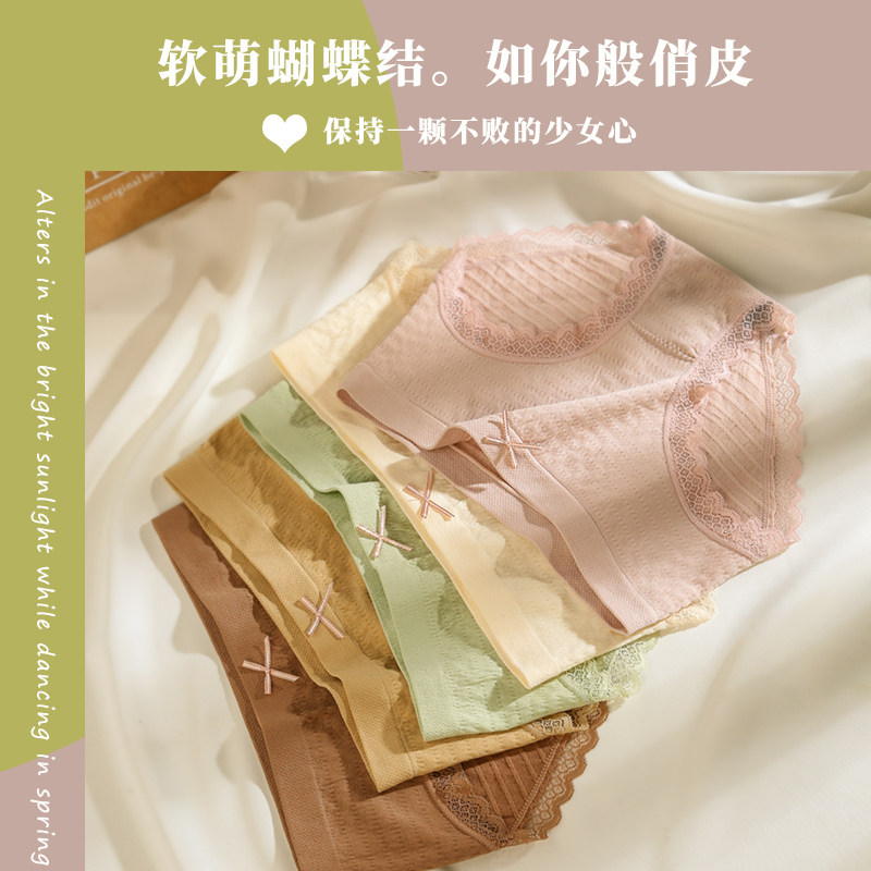 Underwear women's pure cotton crotch cotton crotch summer thin section breathable lace mid-waist Japanese girls large size triangle shorts head