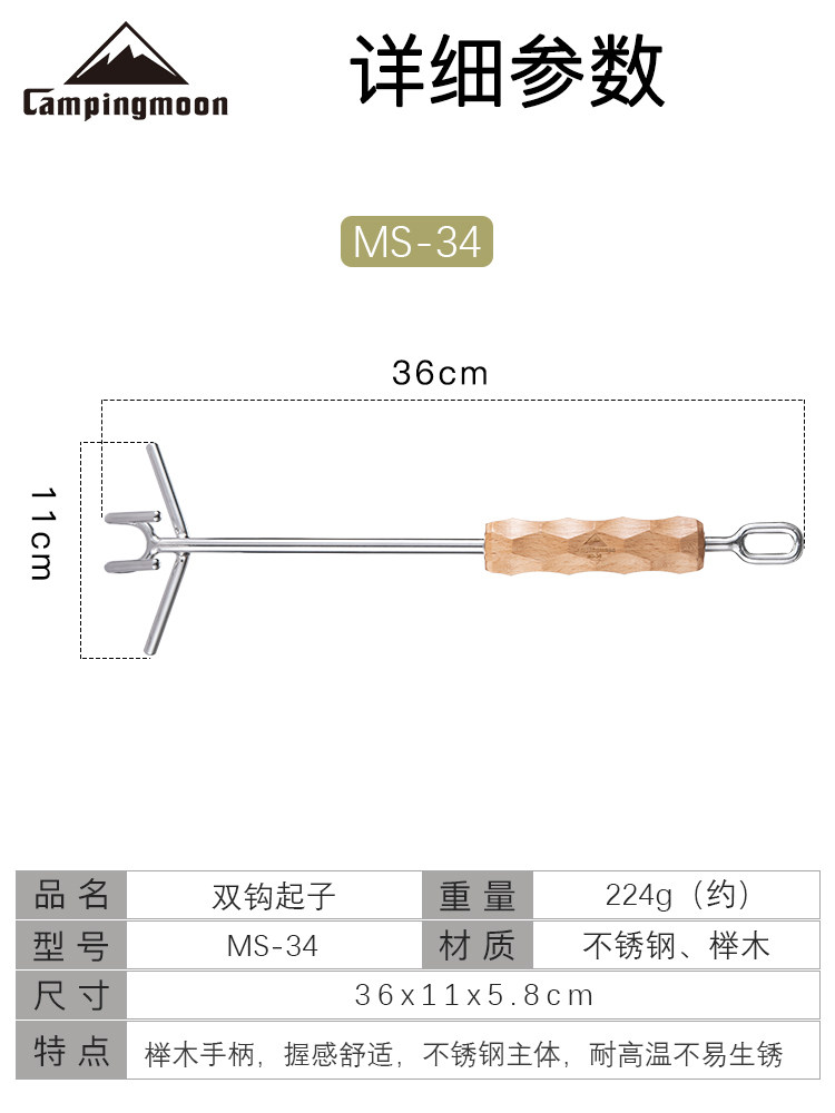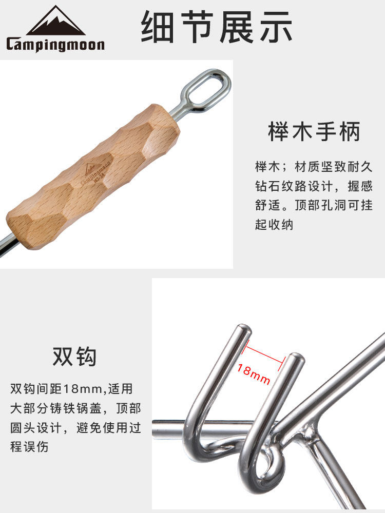 (Hello Camping Society) Kirman Stainless Steel Double Hook Driver Cover Hook Dutch Pan Lid Hook Anti Burn Lengthen