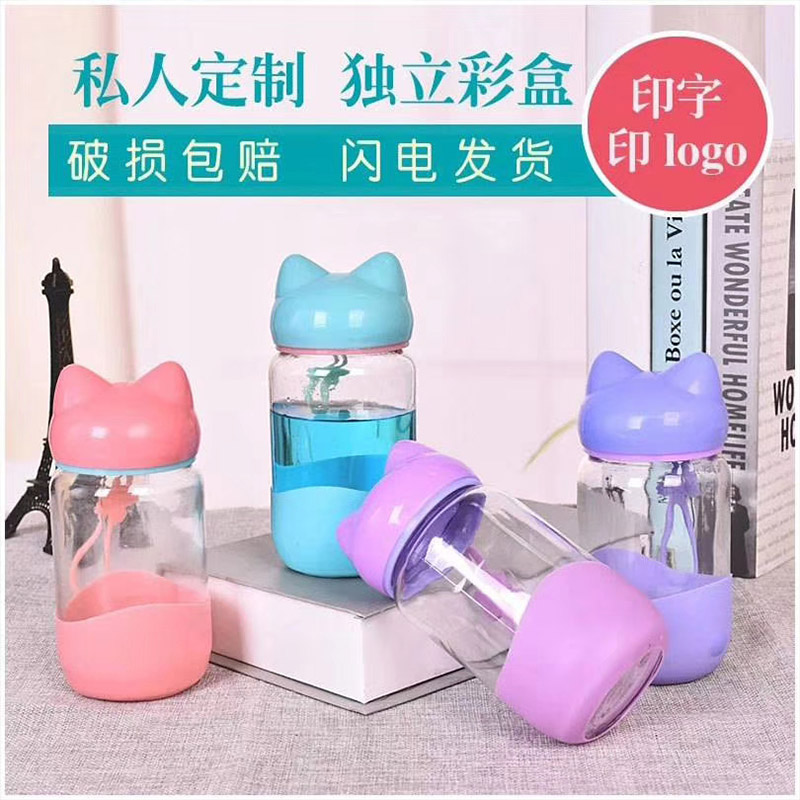 Water Cup Sports Summer Household Cartoon Children Simple Creative Cute Fox Glass Transparent Custom Cup Gift