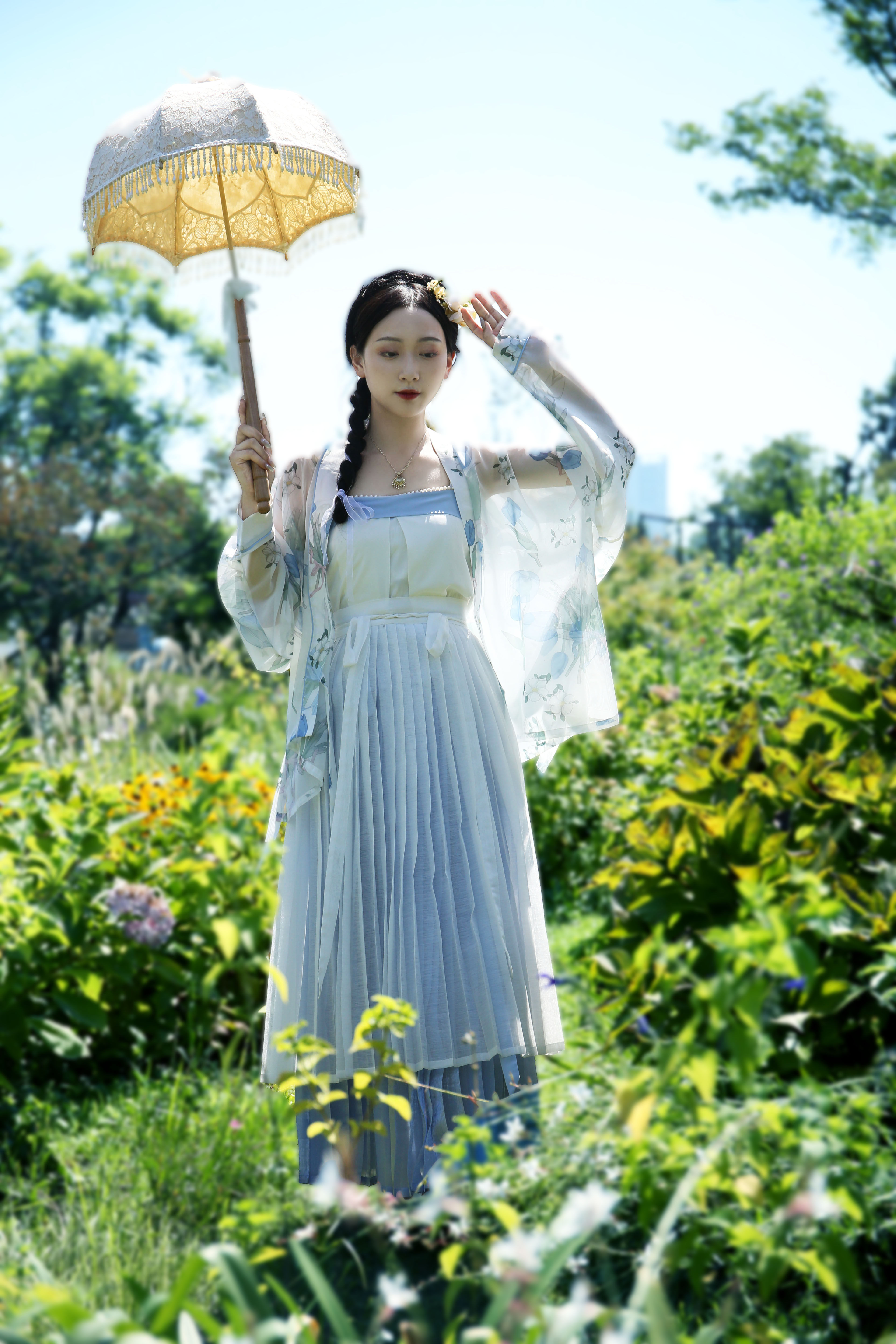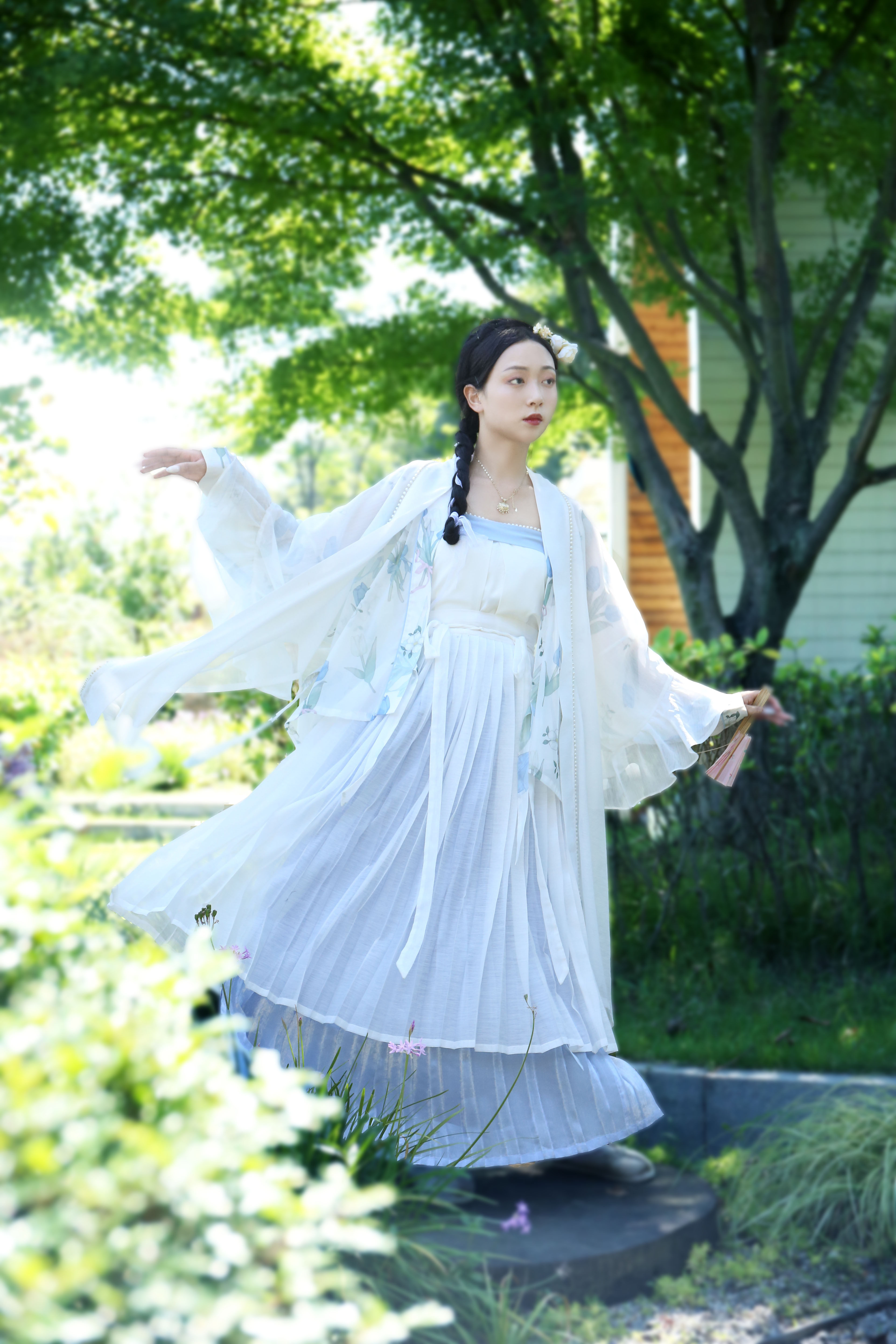 Suhua faction new product tulip series one piece pleated skirt aircraft sleeve triangle pleated sling Hanfu daily