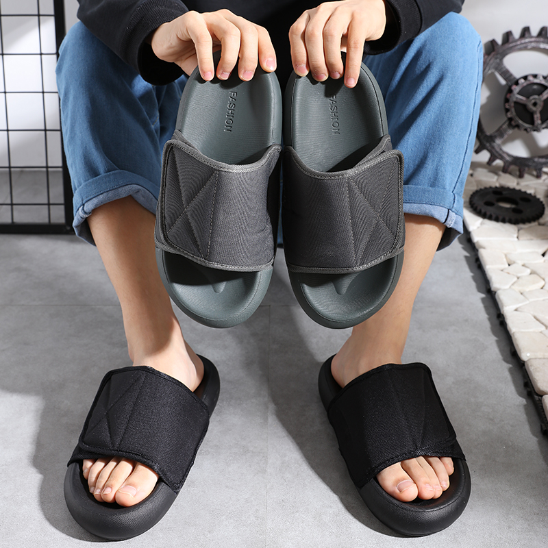 Men and women couples Velcro sandals and slippers outside wearing ins tide thick-soled bread beach shoes fashion personality men's slippers