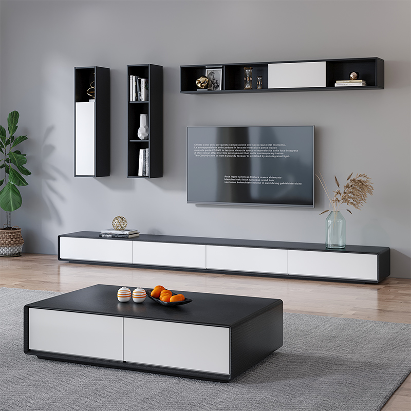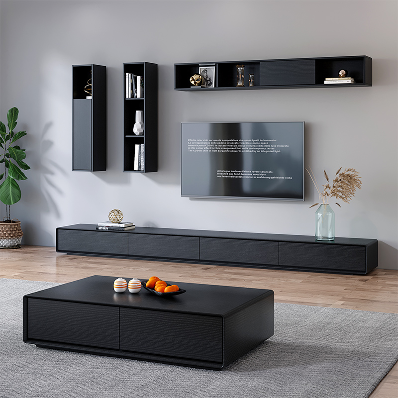 Nordic TV cabinet coffee table combination set size apartment living room simple modern TV cabinet rounded anti-collision black