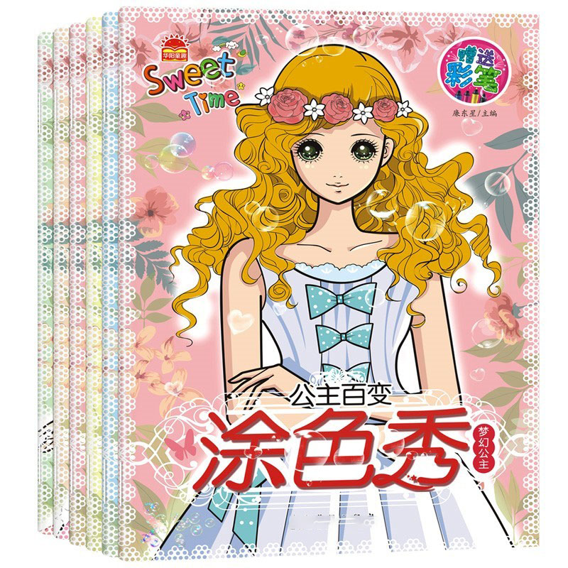 Comic Elementary School Children Thick Princess Wax Stroke Picture Album Painted this paint paper Children's drawings Painprints This girl fills this book