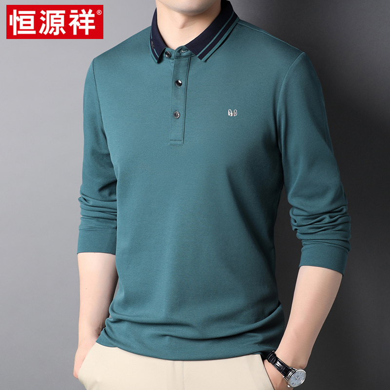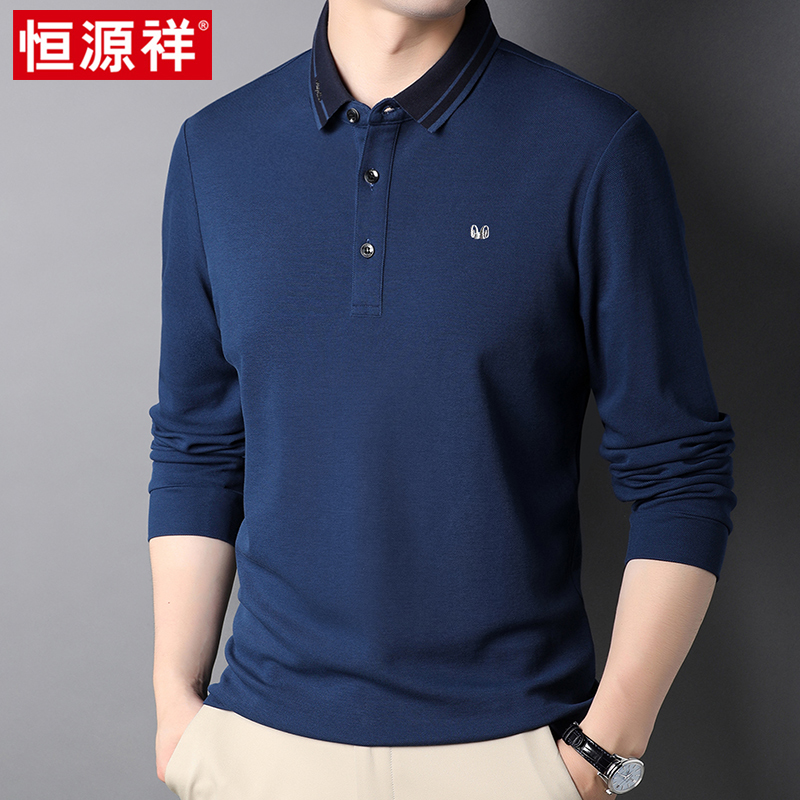 Hengyuanxiang long-sleeved t-shirt men's 2021 autumn new lapel polo shirt solid color simple middle-aged loose bottoming shirt