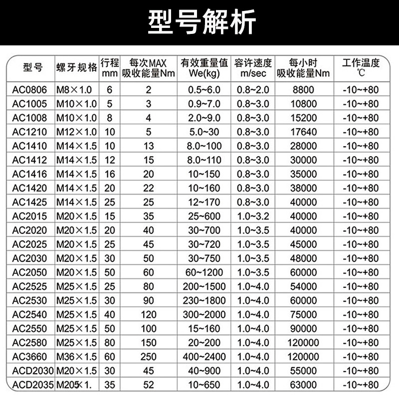 Oil pressure buffer RB0806 RBC1412 1007-2 adjustable AC1210 AD1412 pneumatic shock absorber