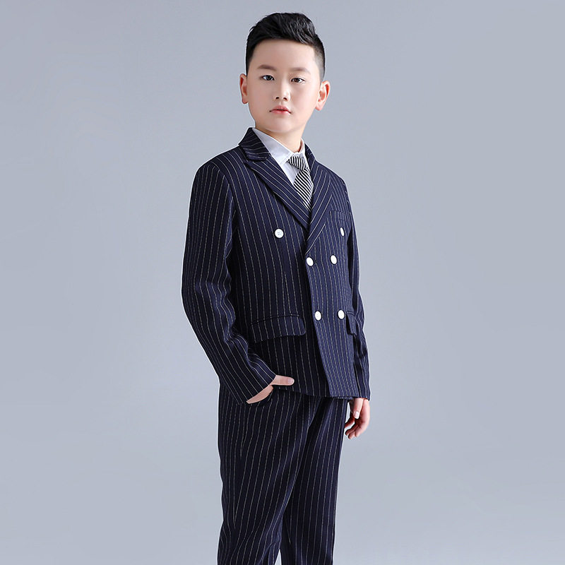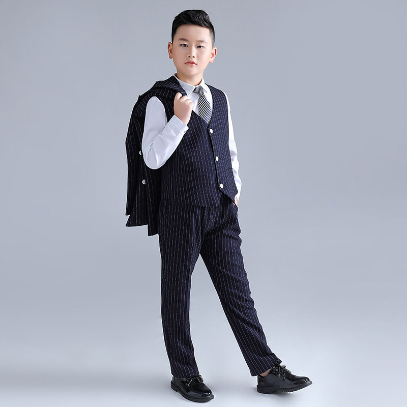 Fat Boy Suit Plus Fertilizer Step Up Flower Boy Wedding Host Performance Gown Boy Gentleman Wind Striped Little West Suit Suit
