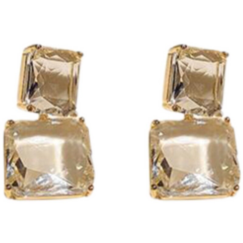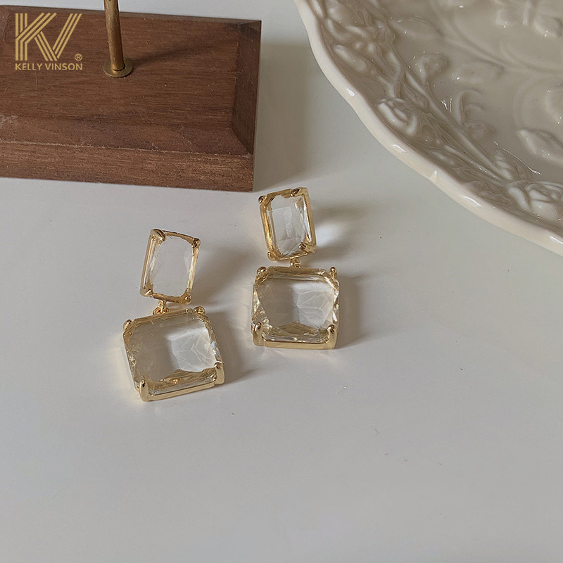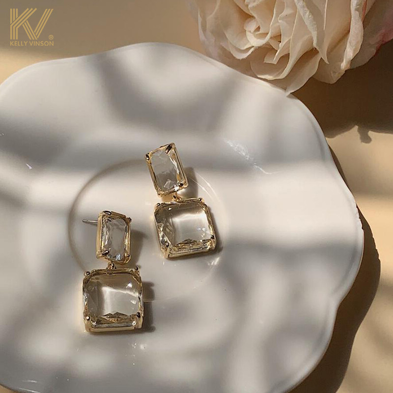 Transparent Earrings Lady Unique Square Crystal Earrings Pendant Pure Silver Needle Ear Clip Superior Feel Light Lavish Ear Pin