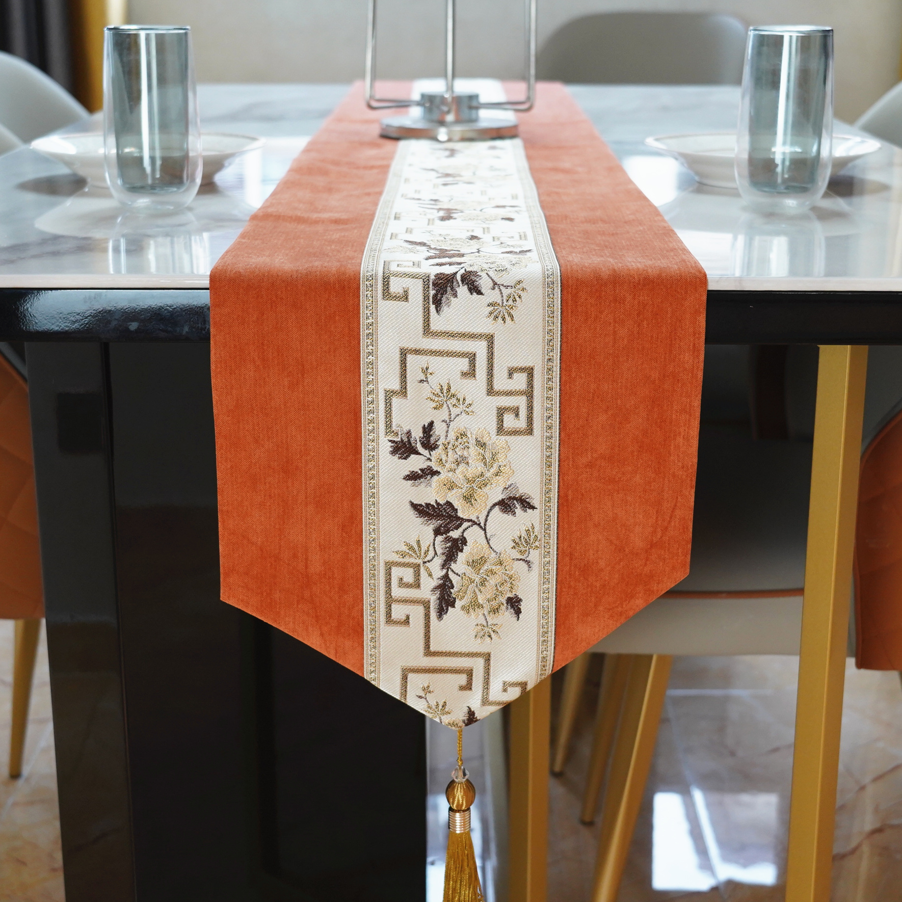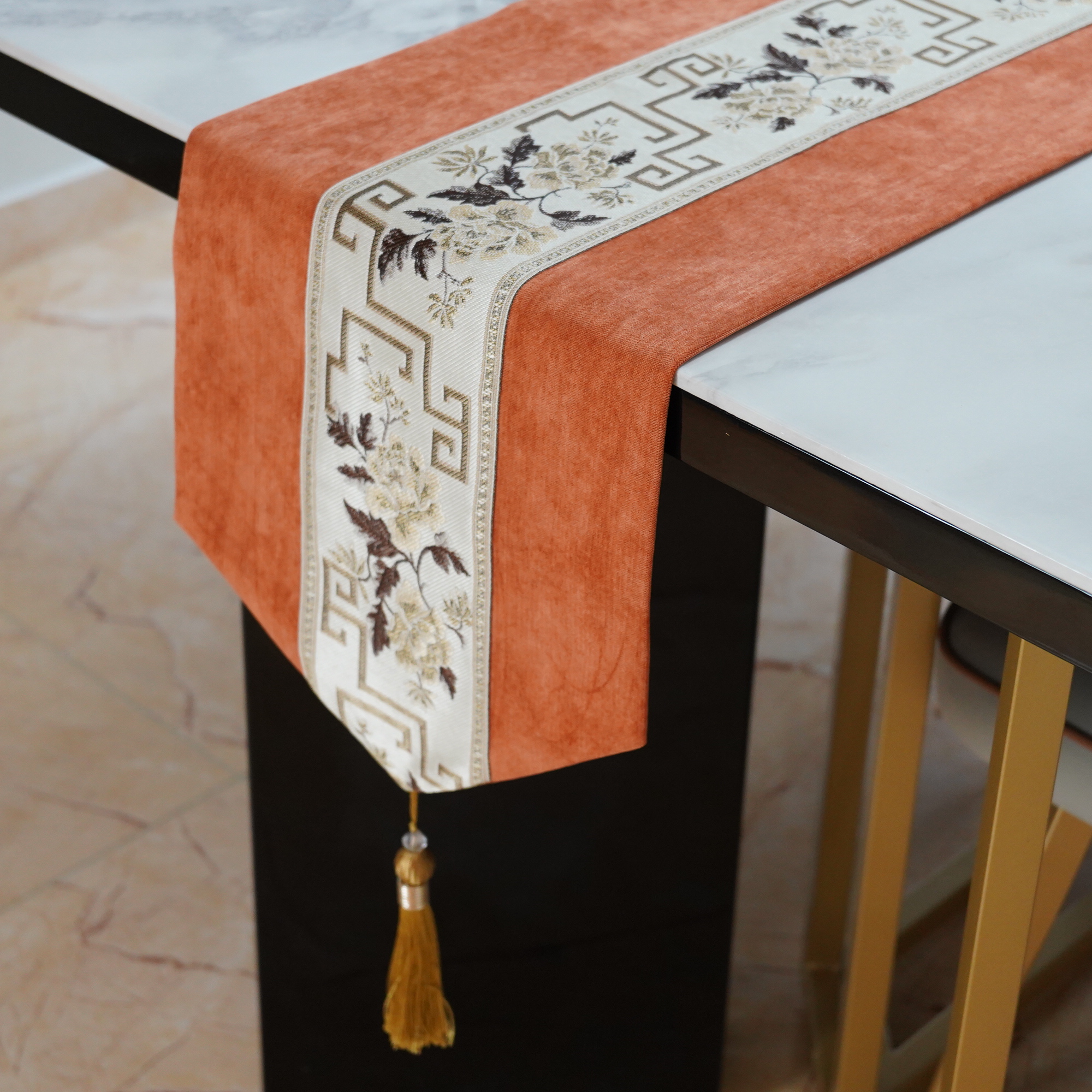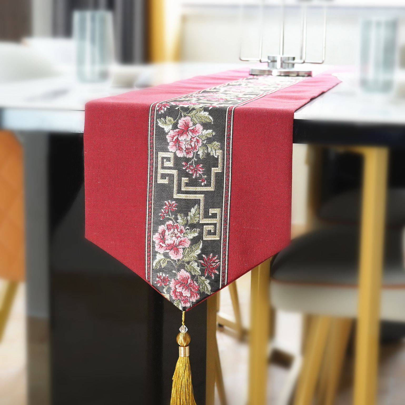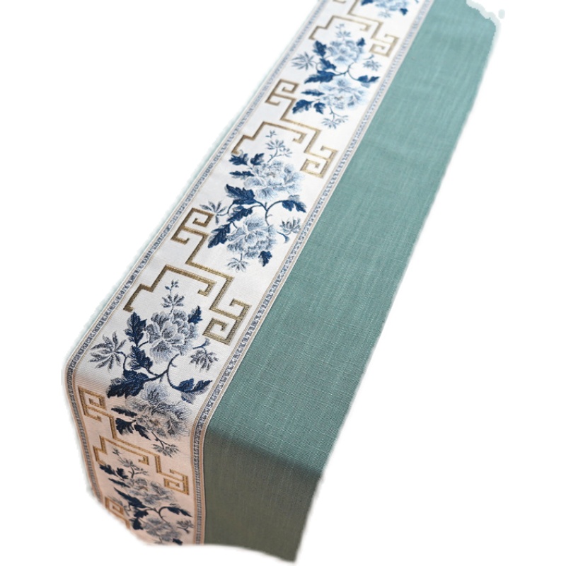 Blue table flag edge New Chinese deep blue blue flowers light green two thick side New Chinese light blue blue brown canvas in deep red underground red cloth in deep red