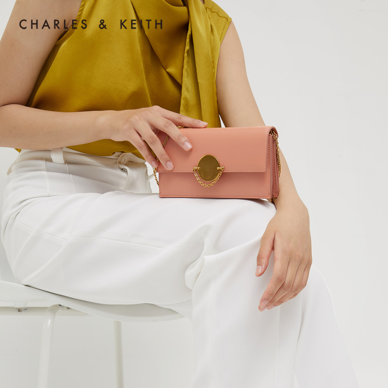 CHARLES & KEITH Spring/Summer Women's Bag CK6-10840198-1 Ladies Metal Buckle Chain Accent Cross-body Bag Wallet