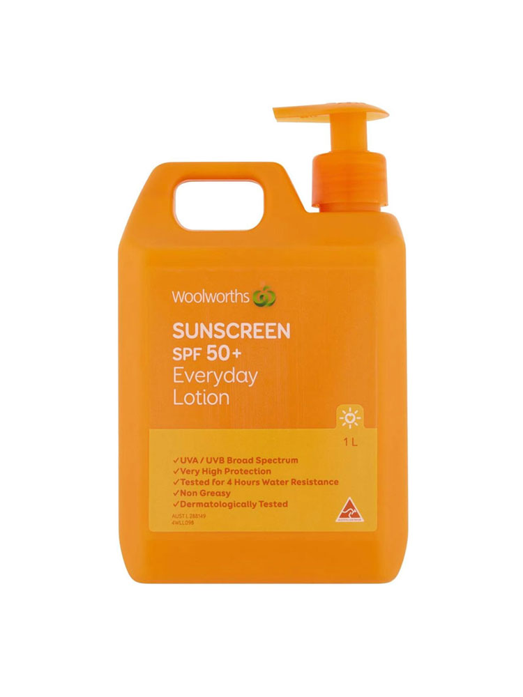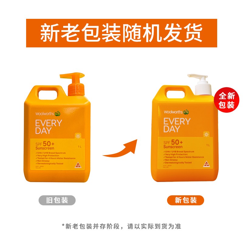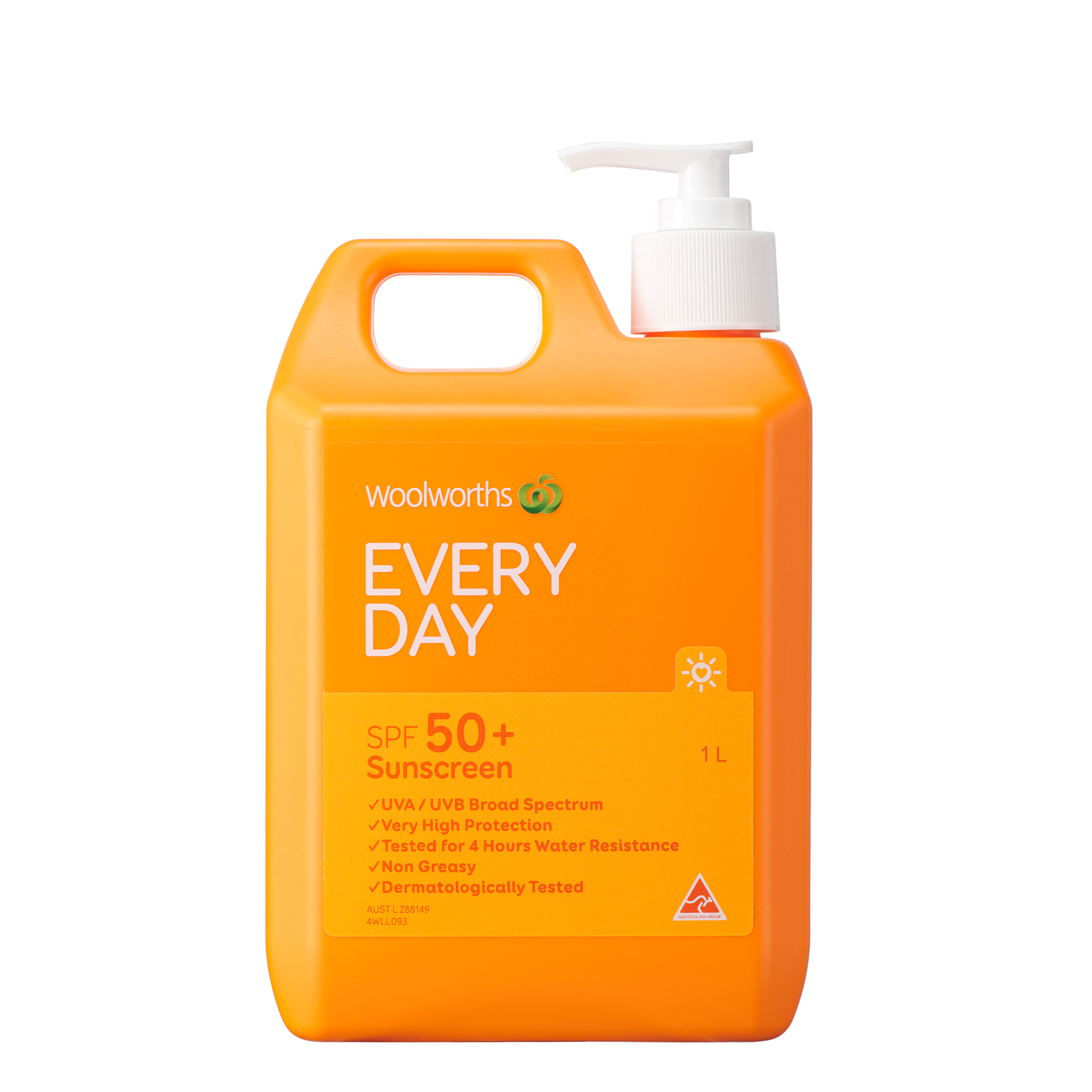 Australian Woolworths Sunscreen SPF50 1L pack children available full body sunscreen everyday