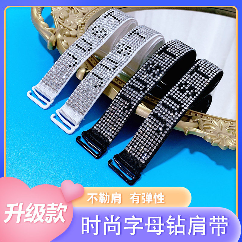 Underwear straps shiny letters sexy rhinestones can be exposed hot drill underwear straps big bra replacement straps
