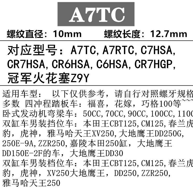 Zonshin spark plug Morung tricycle 110125150175200250 spark plug accessories fit
