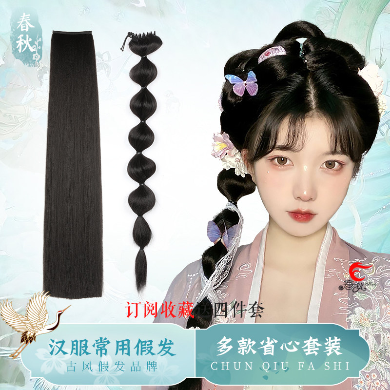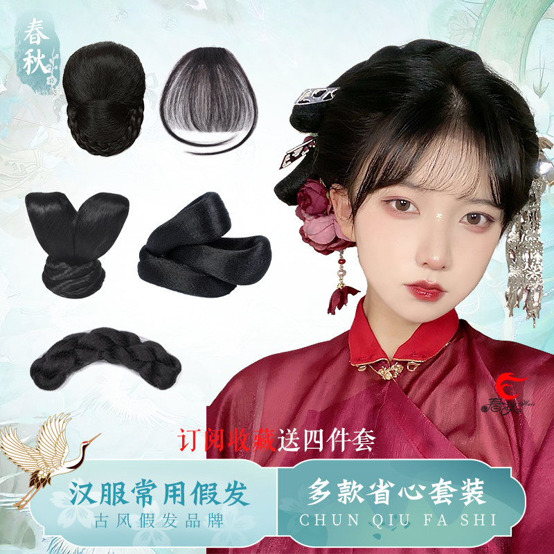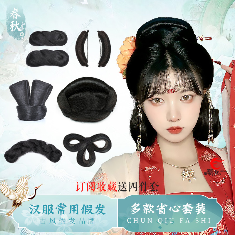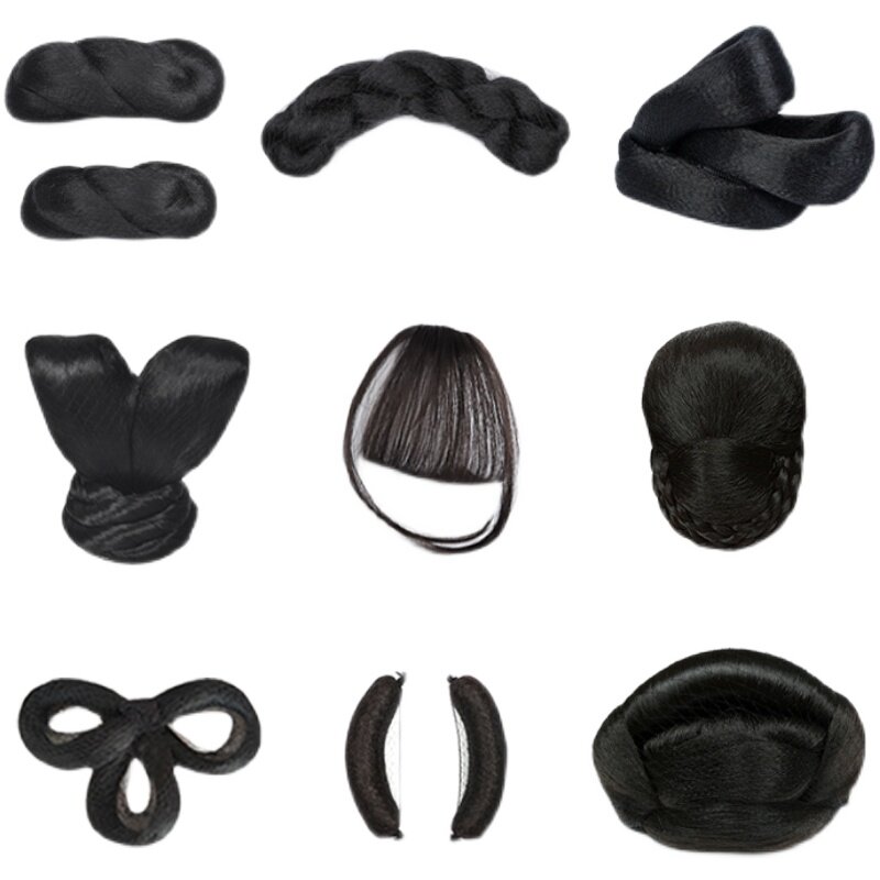 Wig Ancient Wind Hanfu Hair Bag Women's Ancient Fashion Hairstyle Integrated Cushion Hair Horn Bag Styling Head Accessories Hair-style Hair Style-Taobao
