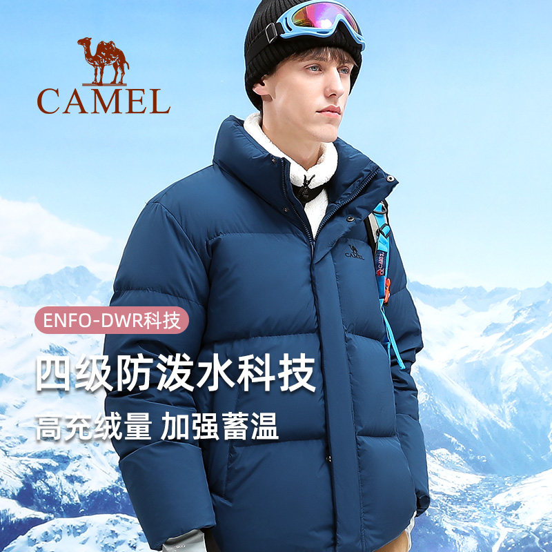 Camel Outdoor Men's Down Jacket Short Thickened Winter Windproof Waterproof Warm Black Classic Men's Jacket