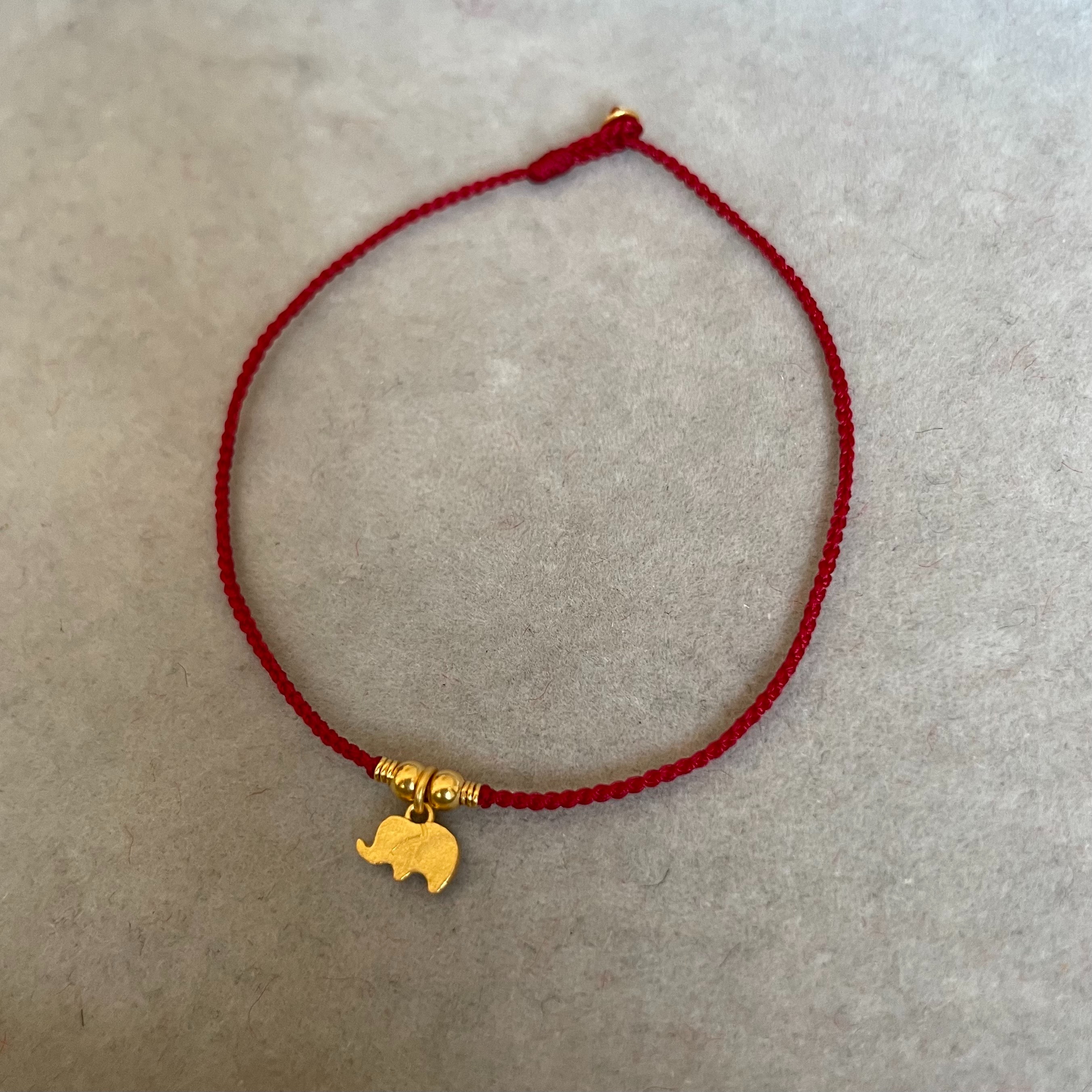 Pure gold spacer small elephant line knot dark red rope hand chisel foot gold spacer small elephant line knot buckle dark red rope anklet foot gold spacer small elephant flat piece buckle dark red rope hand chisel pure gold spacer small elephant flat piece Buckle Dark Red Rope Anklet Pure Gold Spacer
