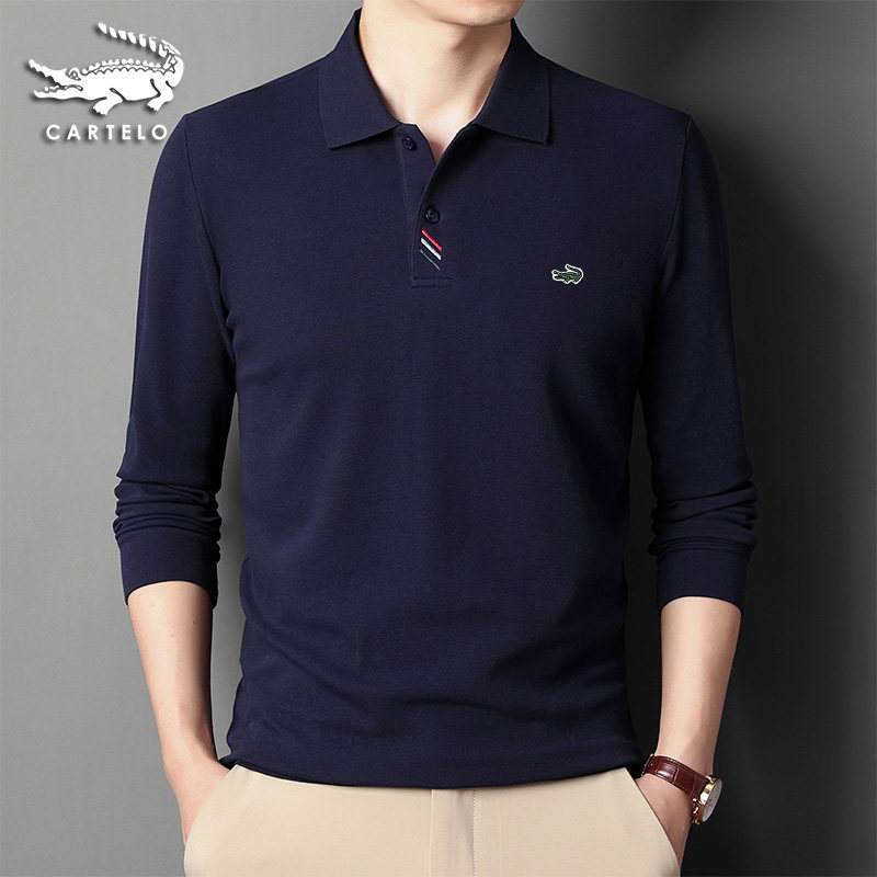 Crocodile 100% pure cotton long sleeve T-shirt male spring autumn slim in pure colour turning polo shirt mesh embroidered Rafa Laurenma ball T-shirt
