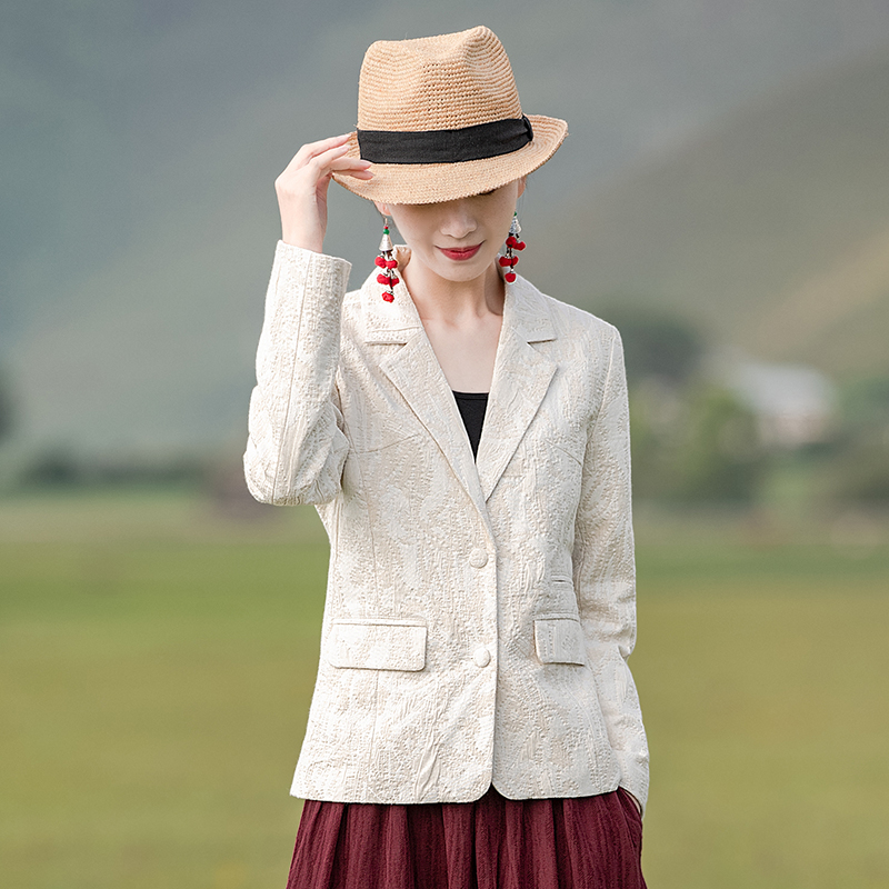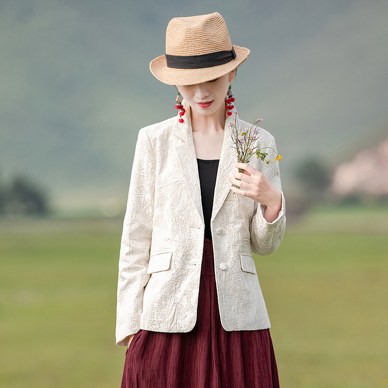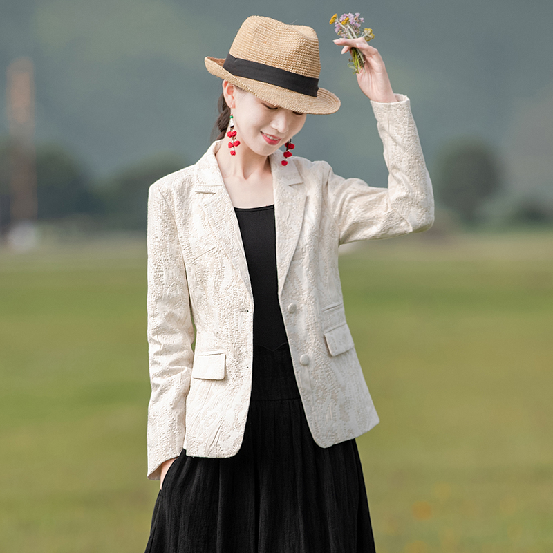 Yingying as a Chinese national wind cotton numb suit 2021 fall new art and women dress casual Western suit for body jacket