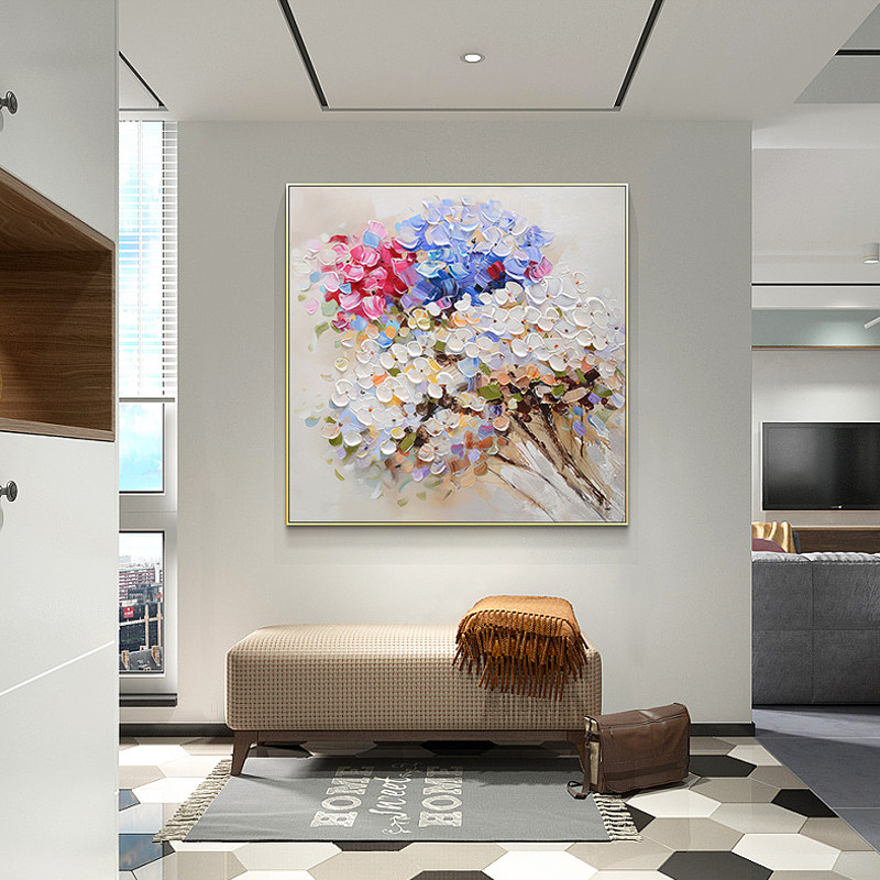 Hand-painted abstract oil painting custom living room mural happy flower restaurant decorative painting modern minimalist entrance door hanging painting