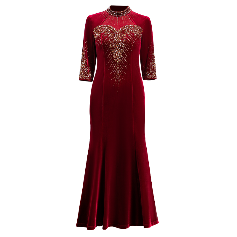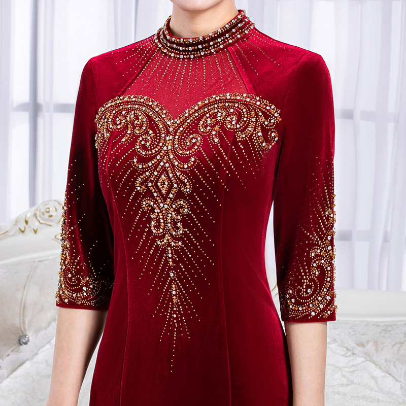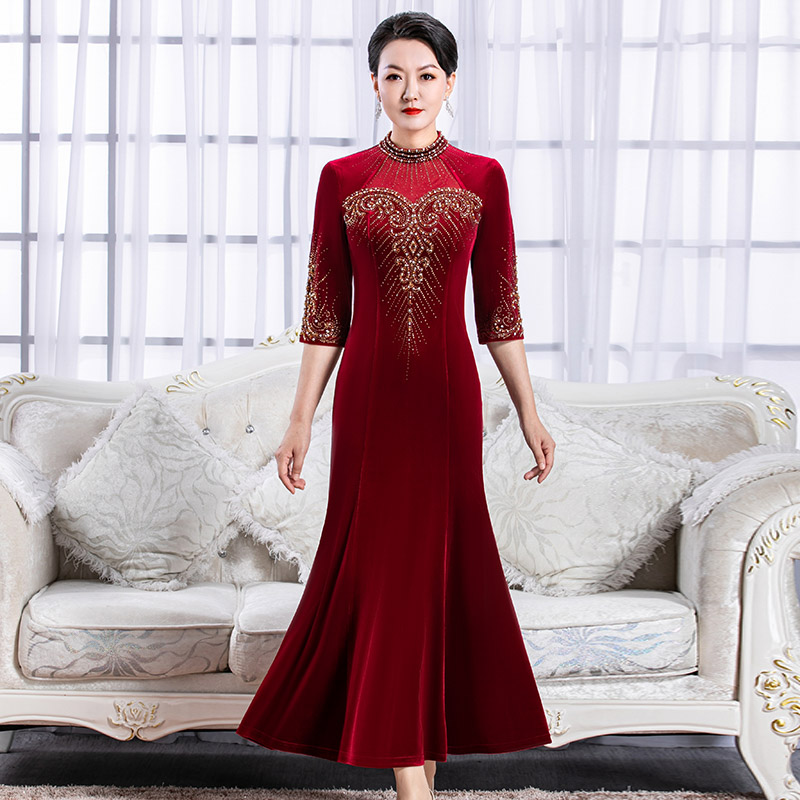 Autumn winter velvet wedding mom dress 2022 new foreign school young noble nail beads wedding mom dress woman