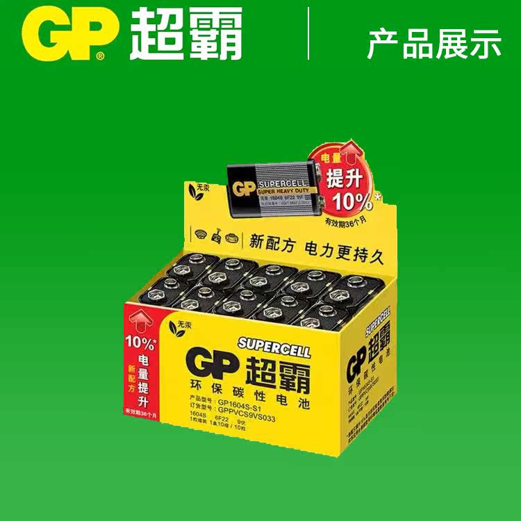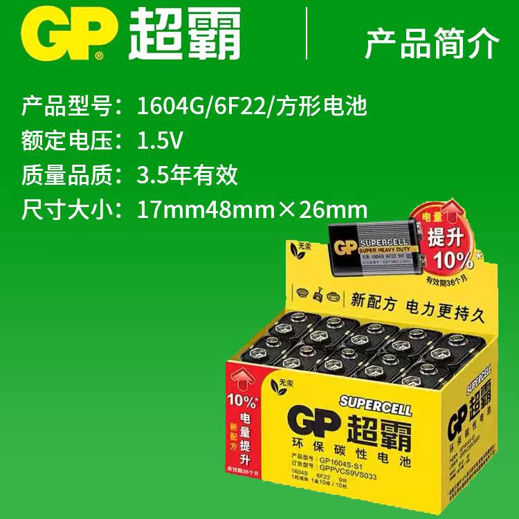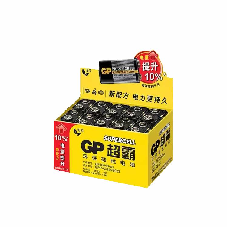 GP super black 9V battery 9 volt 6f22 square meter alarm toy remote control without charging stacked square KTV microphone microphone special battery 10 knots wholesale