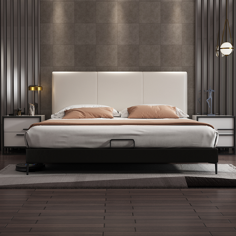 Nordic Italian minimalist light luxury leather bed modern minimalist master bedroom soft package wedding bed small apartment storage bed double bed