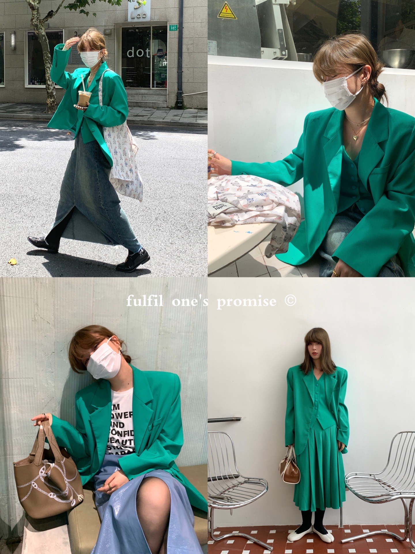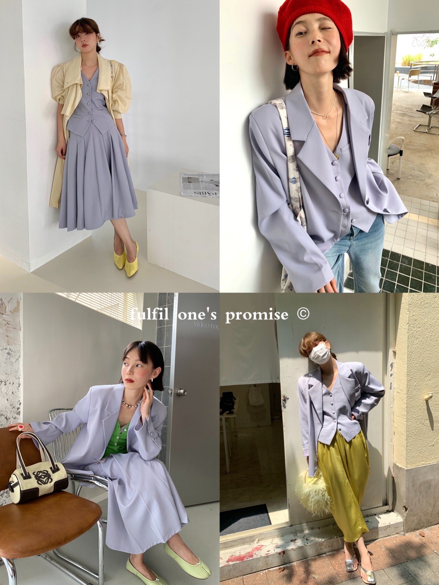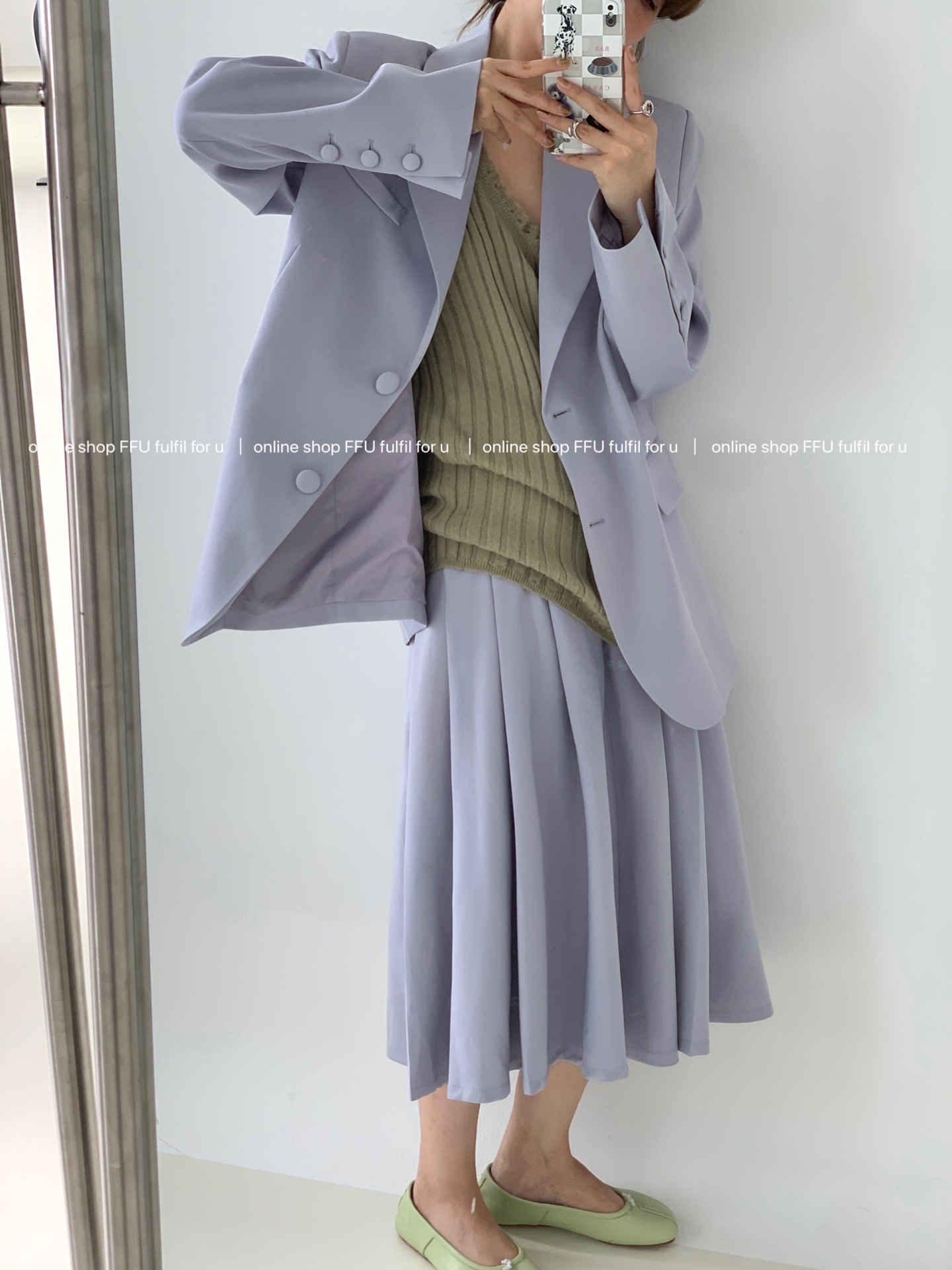 Vintage green suit, vintage green vest, vintage green skirt, Fanghua purple suit, Fanghua purple vest, Fanghua purple skirt