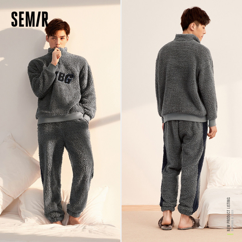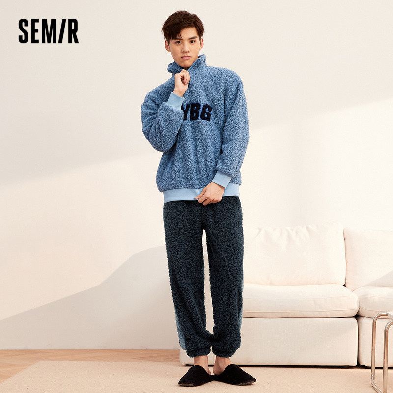 Semir men's home clothing set autumn and winter lamb cashmere padded velvet coral velvet pajamas men's winter